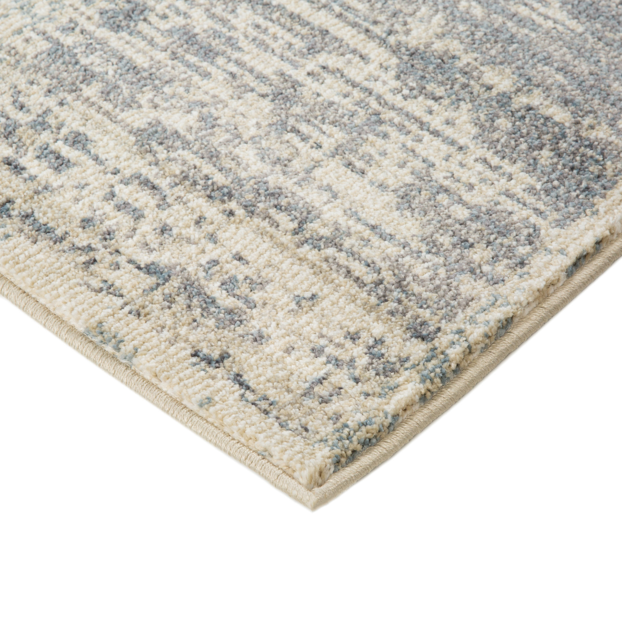 Add great coloration and comfortable texture to your space with this 6-foot x 9-foot gray light blue and ivory geometric area rug. Ideal for spaces with kids and pets, this rug is stain resistant to help repel dirt and spilled liquids. Built to last, this rug crafted from polypropylene fibers is known for its durability and long lasting appeal. Rugs are a great way to showcase your style, hide imperfections, warm your home and reduce noise. This larger sized, contemporary styled rug is ready to create a focal point or statement piece in your room. 79.00-inch h x 108.00-inch w x 0.40-inch d.