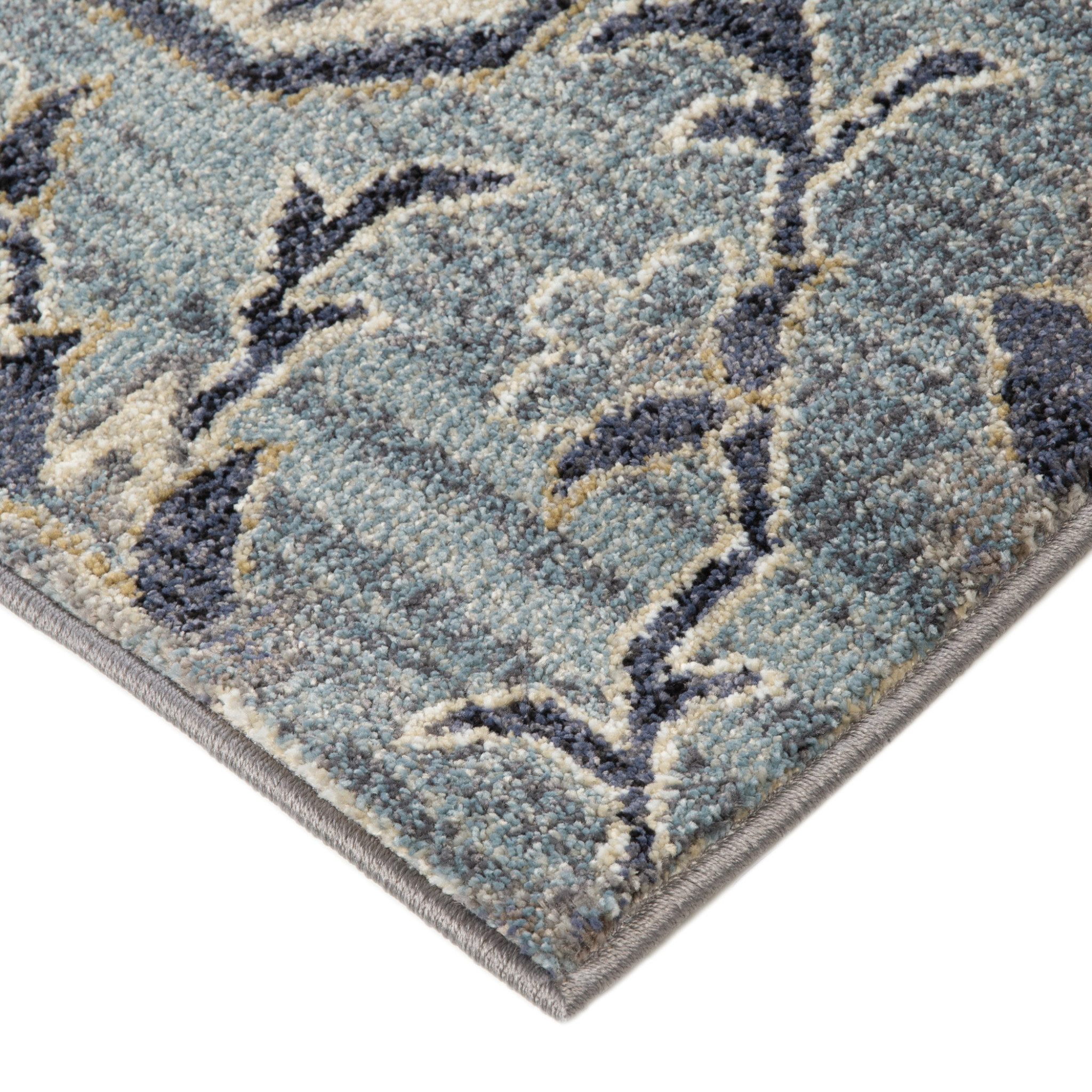 Add some artistry to your room with this 6-foot x 9-foot ivory gray and blue floral medallion area rug. Ideal for spaces with kids and pets, this rug is stain resistant to help repel dirt and spilled liquids. Built to last, this rug crafted from polypropylene fibers is known for its durability and long lasting appeal. Rugs are a great way to showcase your style, hide imperfections, warm your home and reduce noise. This larger sized, traditional styled rug is ready to create a focal point or statement piece in your room. 79.00-inch h x 108.00-inch w x 0.40-inch d.