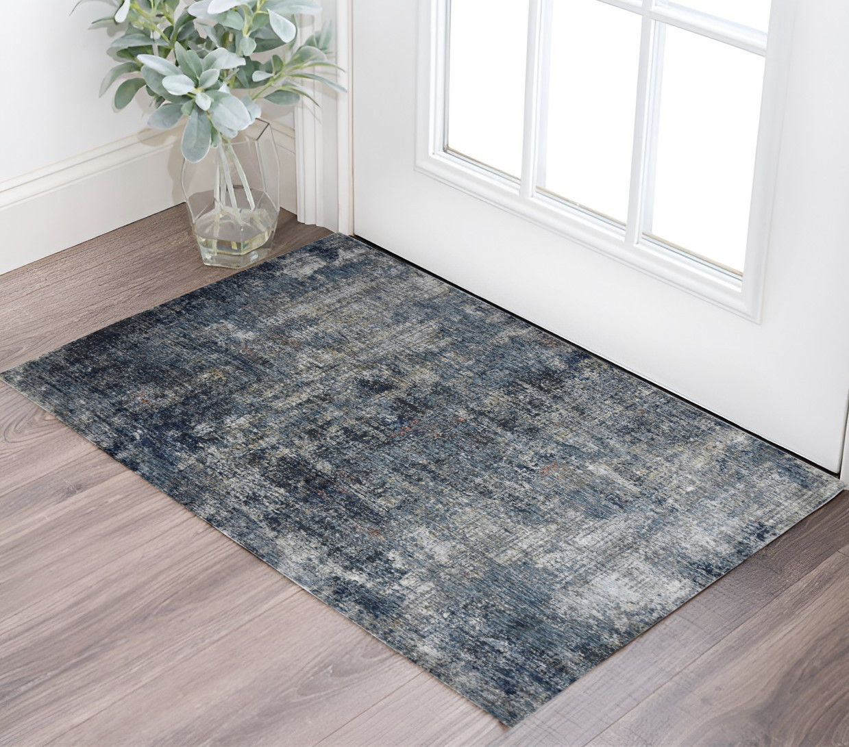 This 2-foot x 3-foot ivory and gray abstract area rug, is a great way to add warmth to a room. Built to last, this rug crafted from polyester fibers is known for its durability and long lasting appeal. Rugs are a great way to showcase your style, hide imperfections, warm your home and reduce noise. This smaller sized, contemporary styled rug is just what you need for your walkway, bedside, in front of door, cabinet, refrigerator, or chair. 24-inch h x 36-inch w x 0.38-inch d.