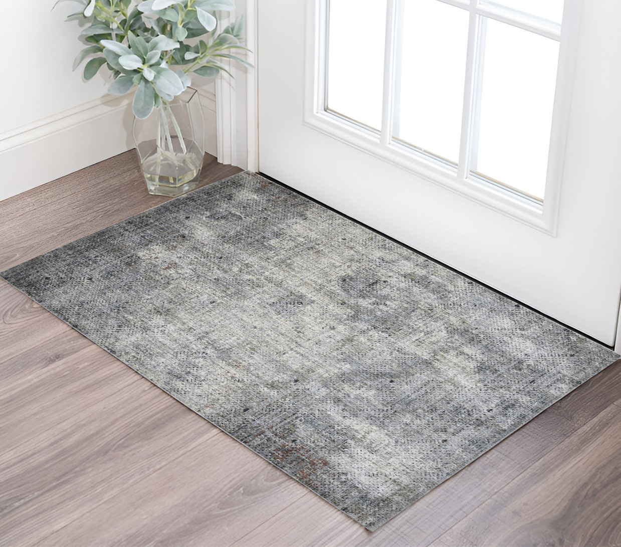 Set an inviting tone in your space with this 2-foot x 3-foot ivory black and gray abstract area rug. Built to last, this rug crafted from polyester fibers is known for its durability and long lasting appeal. Rugs are a great way to showcase your style, hide imperfections, warm your home and reduce noise. This smaller sized, modern styled rug is just what you need for your walkway, bedside, in front of door, cabinet, refrigerator, or chair. 24-inch h x 36-inch w x 0.38-inch d.