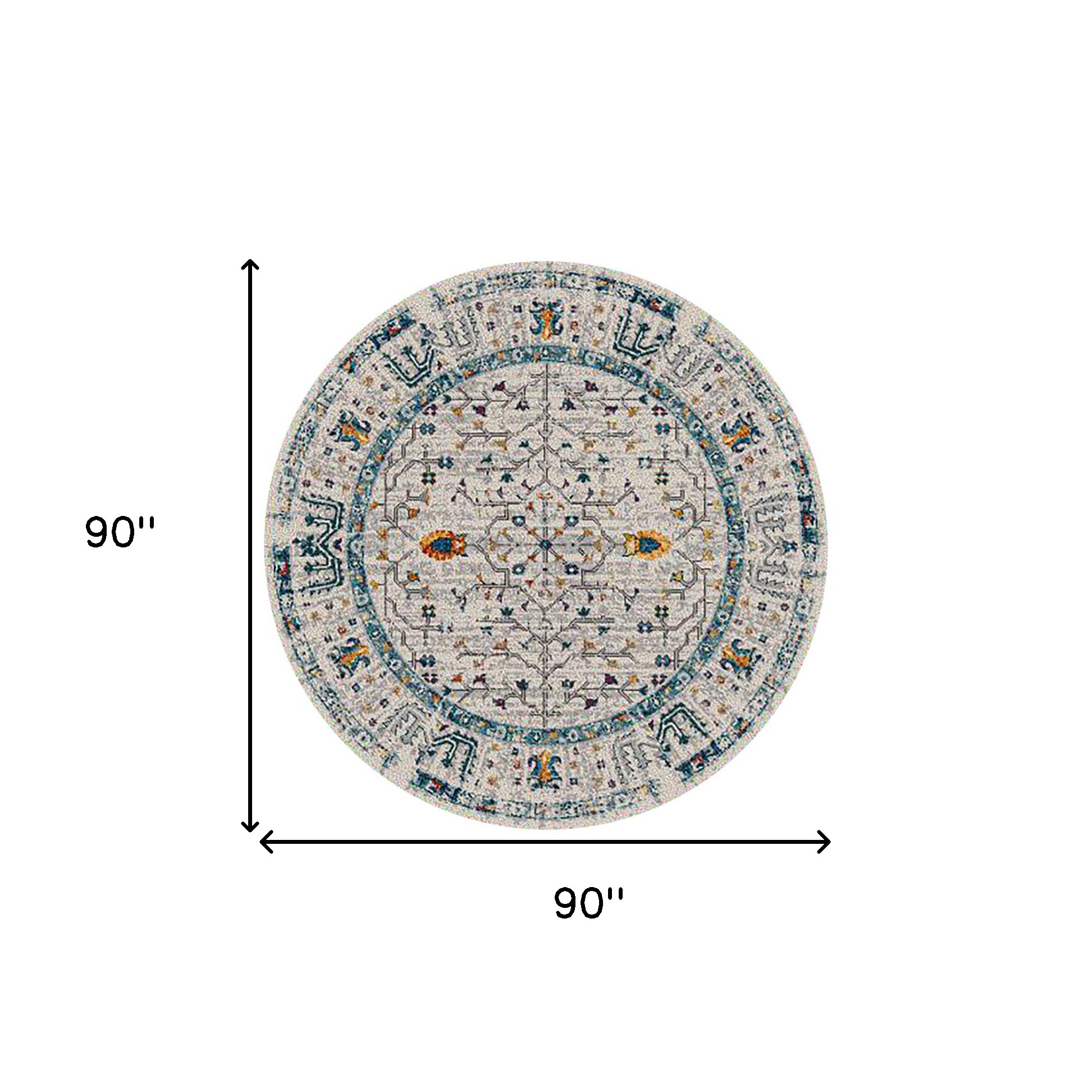 Add some artistry to your room with this 7-foot round yellow and ivory round southwestern stain resistant indoor outdoor area rug. This geometric round shaped rug features a southwestern pattern in yellow and ivory that combines a good looking print with a unique and updated shape. The mix of shape, color, and design gives this rug refreshing visual interest. Ideal for spaces with kids and pets, this rug is stain resistant to help repel stains and spilled liquids. Place this area rug against a hardwood or tile floor and it will enliven your living space with style and sophistication. 90-inch H x 90-inch W x 0.38-inch D