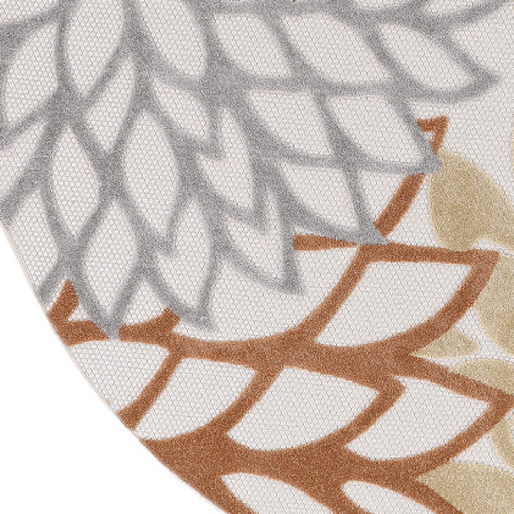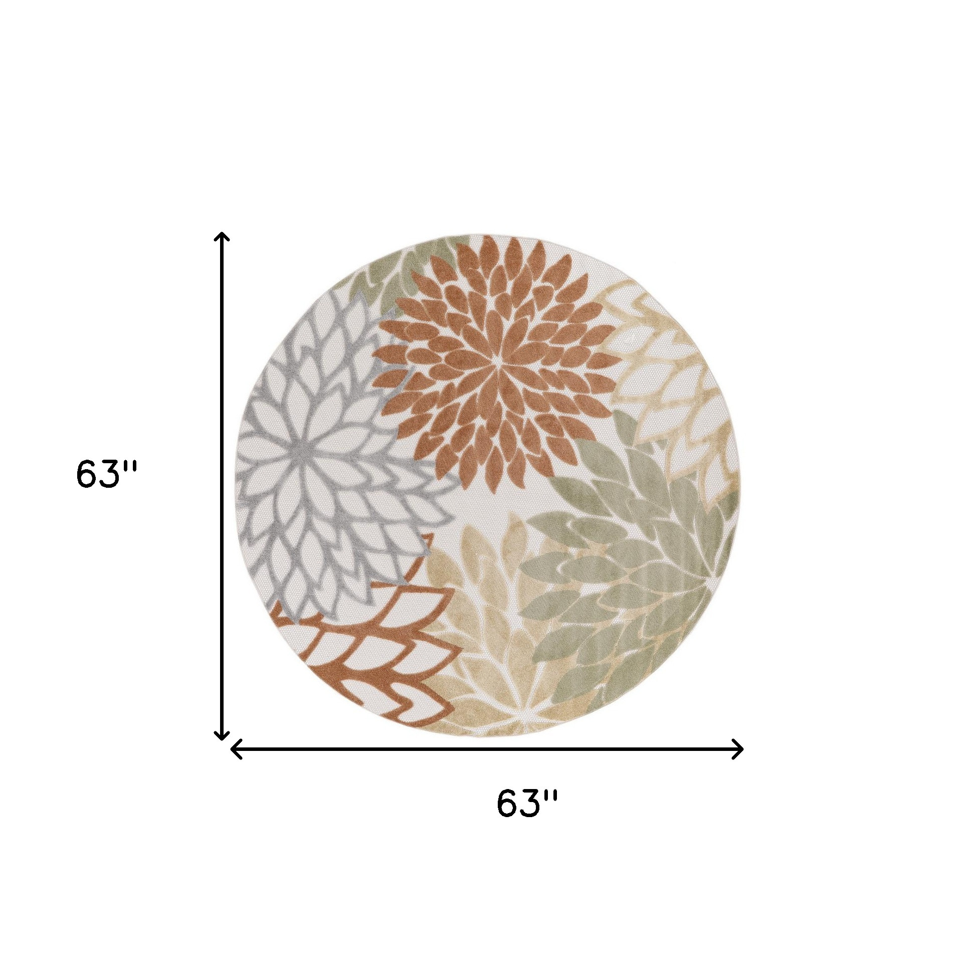 Set an inviting tone in your space with this 5-foot round blue and orange round floral indoor outdoor area rug. This geometric round shaped rug features a floral pattern in blue and orange that combines a good looking print with a unique and updated shape. The mix of shape, color, and design gives this rug refreshing visual interest. Place this area rug against a hardwood or tile floor and it will enliven your living space with style and sophistication. 63-inch H x 63-inch W x 0.25-inch D