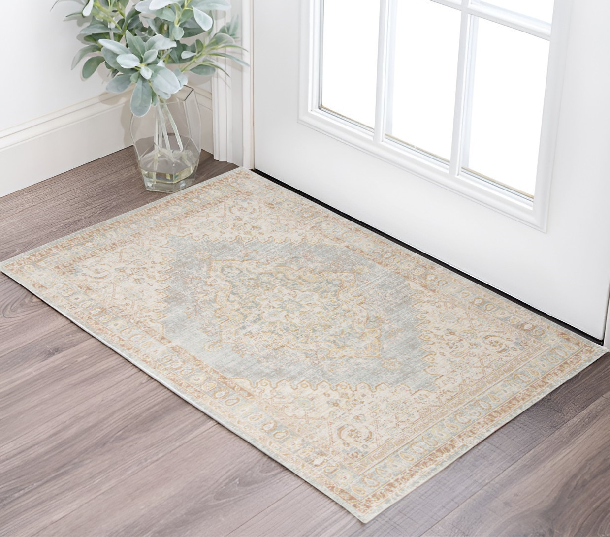 Set an inviting tone in your space with this 2-foot x 3-foot beige and gray medallion power loom worn faded area rug. This rectangle shaped rug features a medallion design in beige and gray to give it visual interest. A classic shape marries with good looking design for your space area rugs help to give warmth and sense of home to your space. 24-inch H x 36-inch W x 0.08-inch D