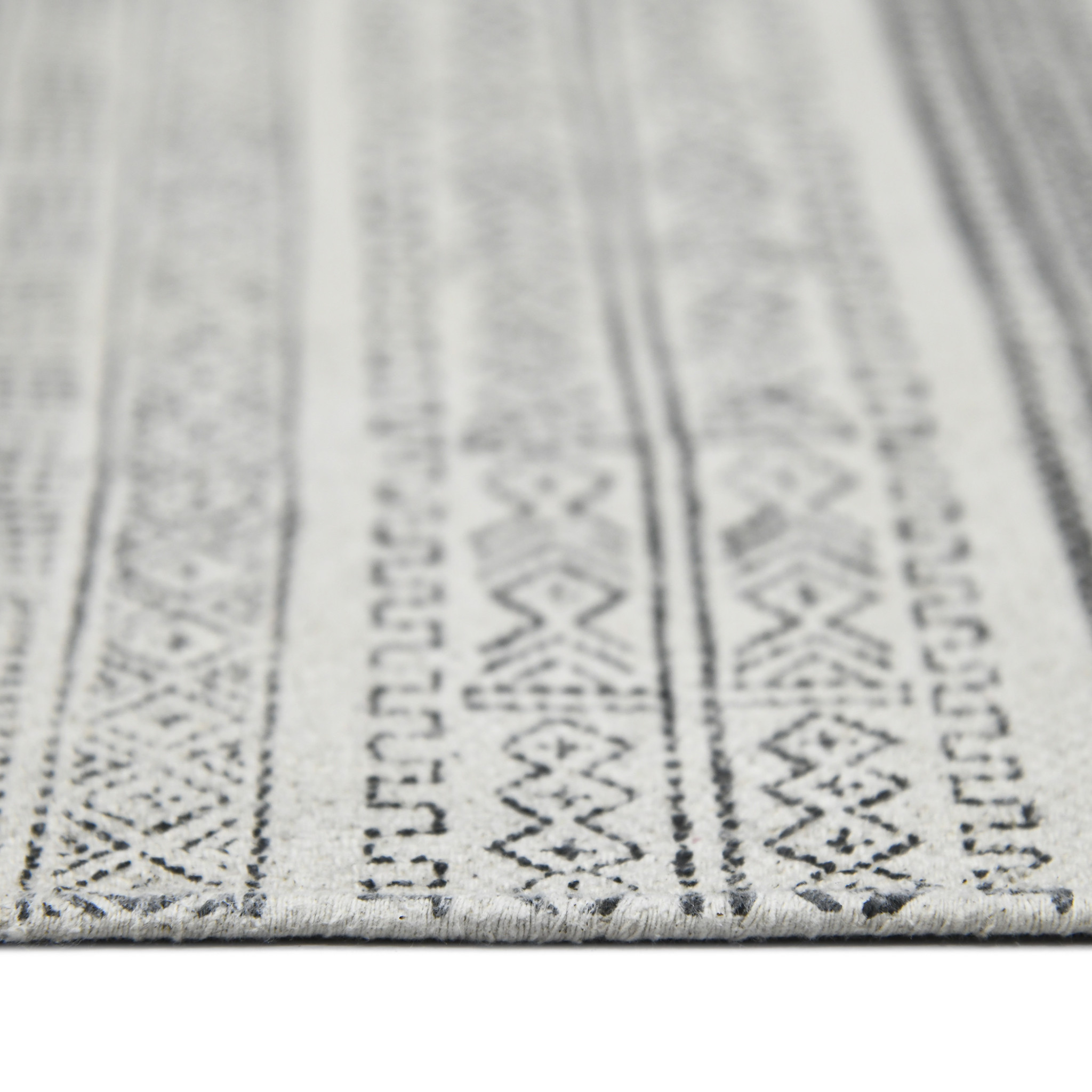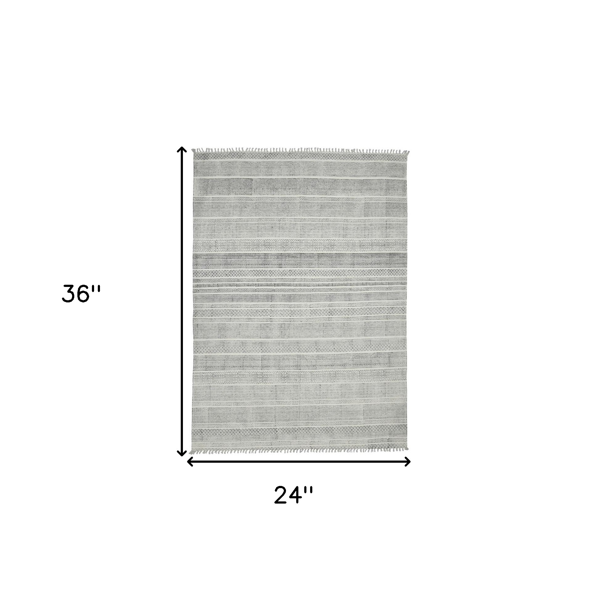 Add some artistry to your room with this 2-foot x 3-foot ivory black and gray geometric flatweave handmade distressed area rug with fringe. Rugs are a great way to showcase your style, hide imperfections, warm your home and reduce noise. Tassel ends bring a timeless and fashionable look to your interior. This smaller sized, contemporary styled rug is just what you need for your walkway, bedside, in front of door, cabinet, refrigerator, or chair. 24.00-inch h x 36.00-inch w x 0.20-inch d.