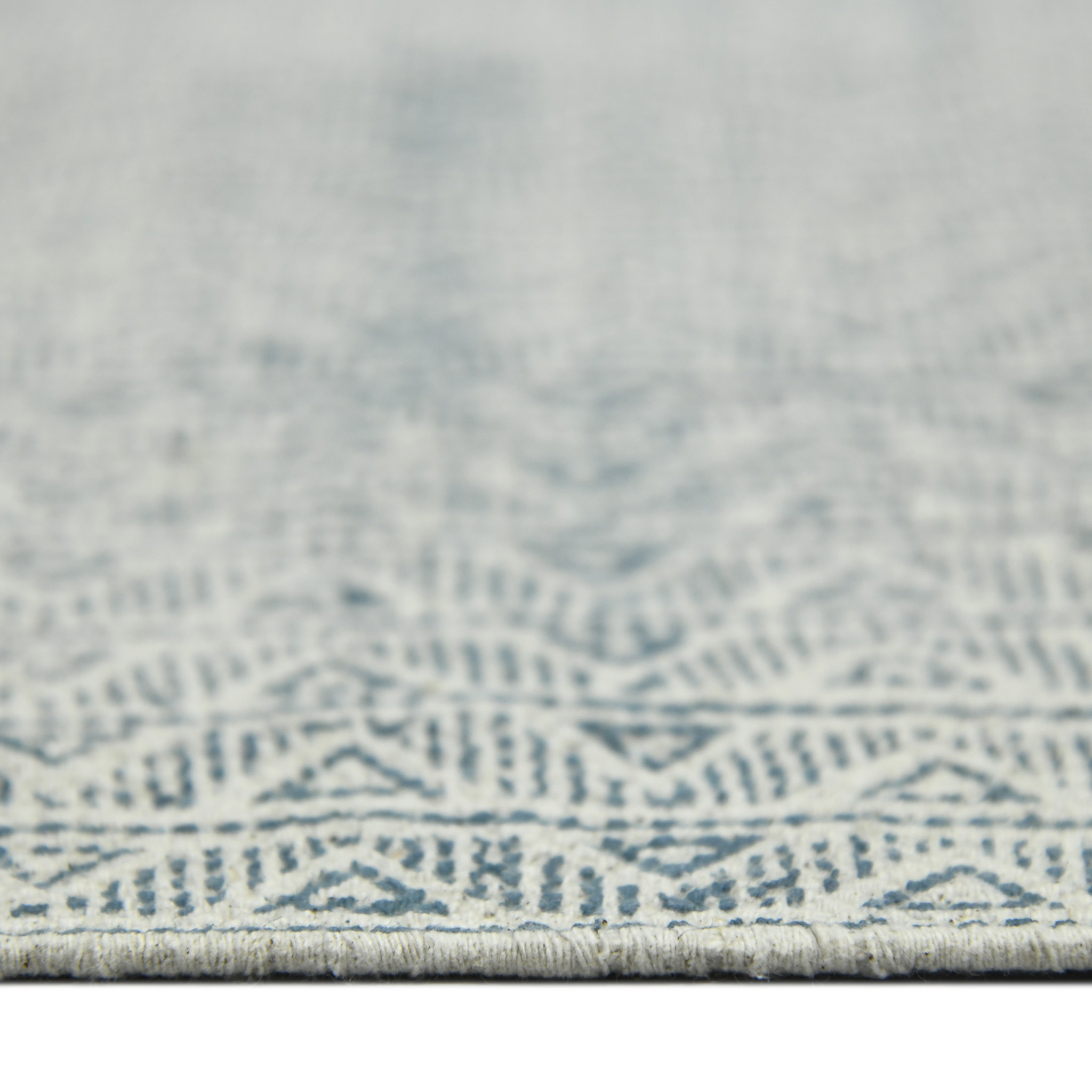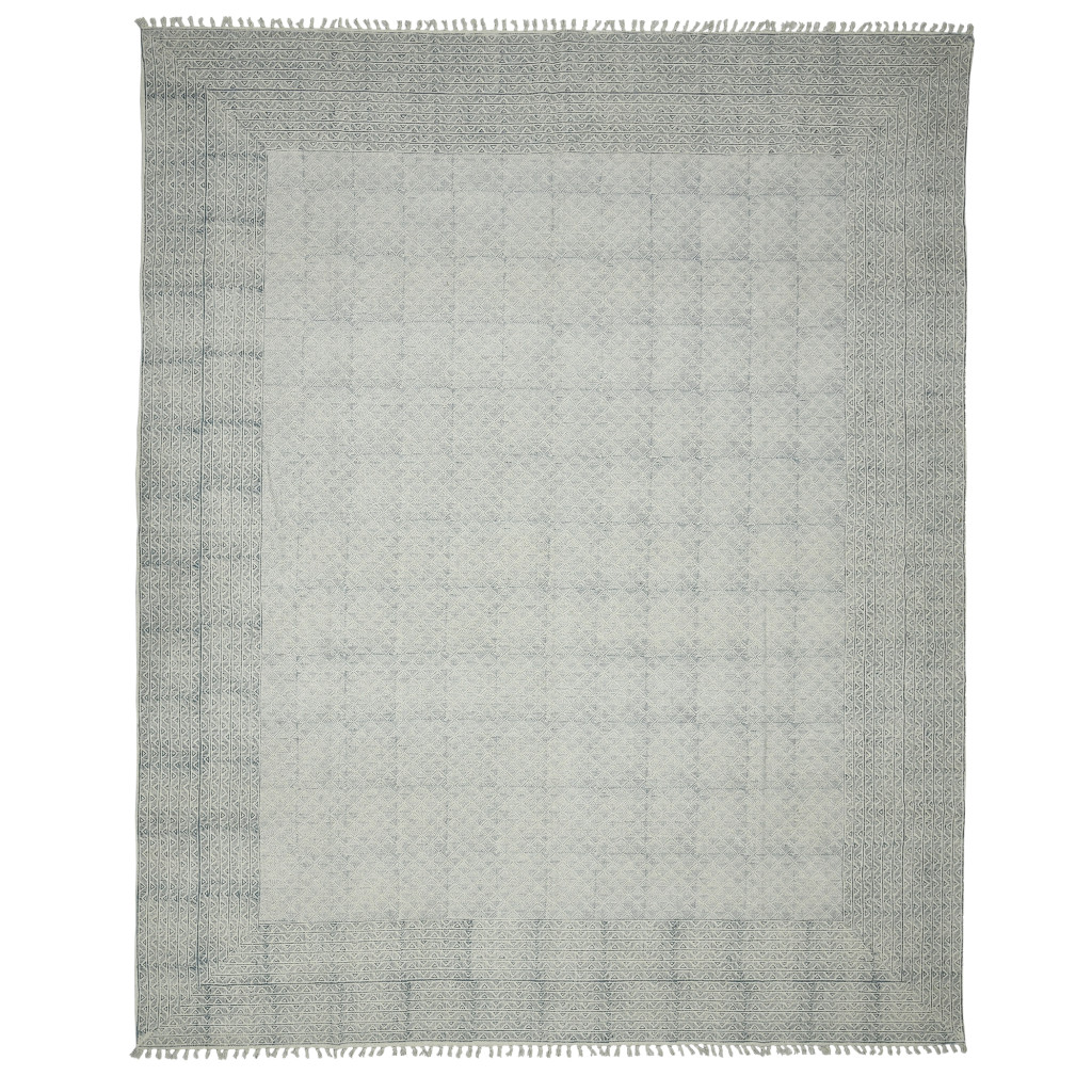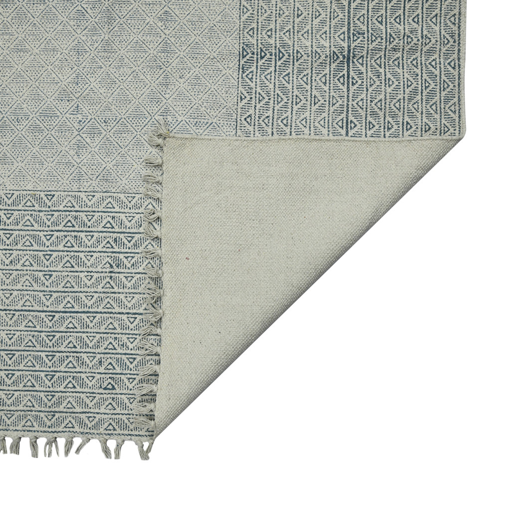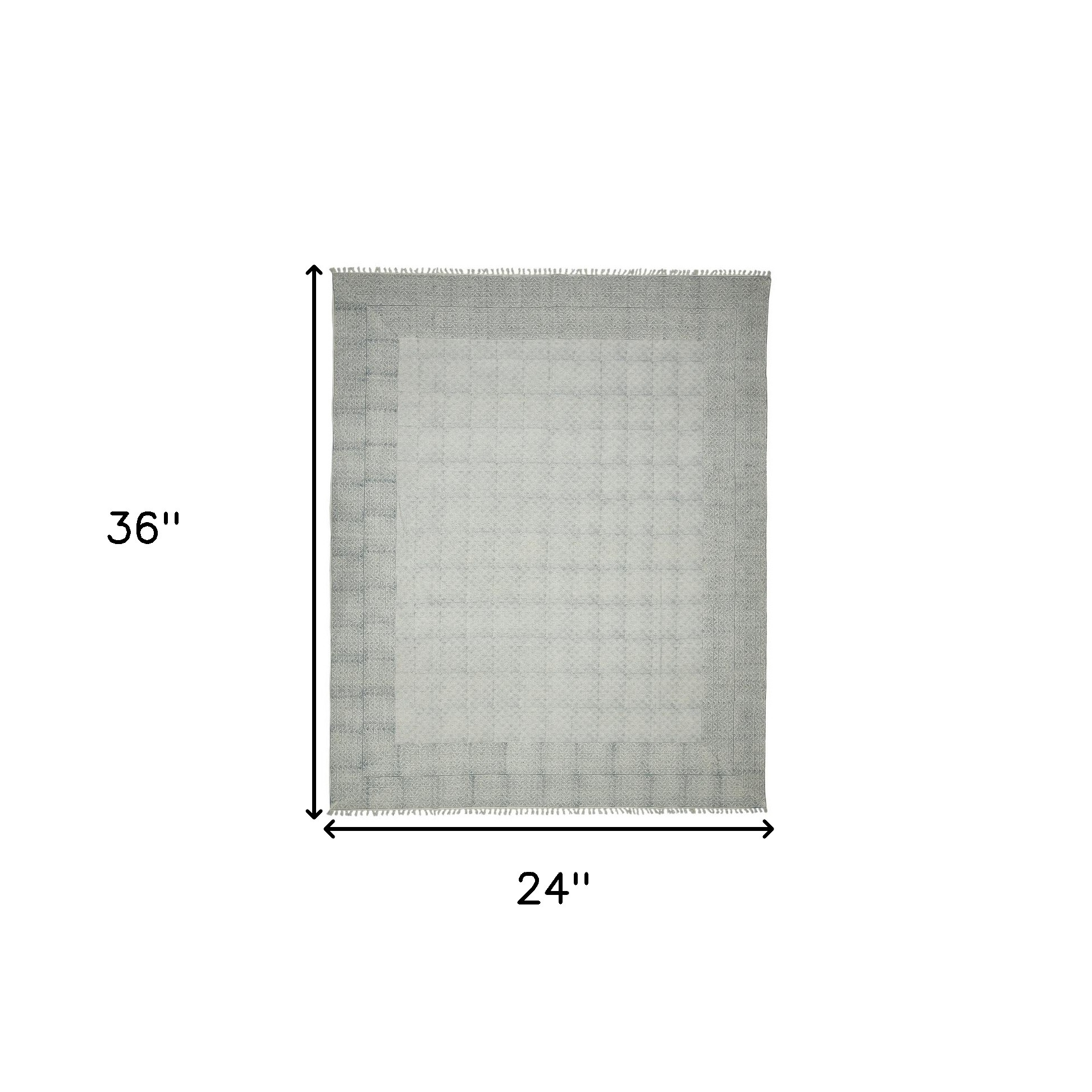 This 2-foot x 3-foot gray and blue geometric flatweave handmade distressed area rug with fringe, is a great way to add warmth to a room. Rugs are a great way to showcase your style, hide imperfections, warm your home and reduce noise. Tassel ends bring a timeless and fashionable look to your interior. This smaller sized, contemporary styled rug is just what you need for your walkway, bedside, in front of door, cabinet, refrigerator, or chair. 24.00-inch h x 36.00-inch w x 0.20-inch d.