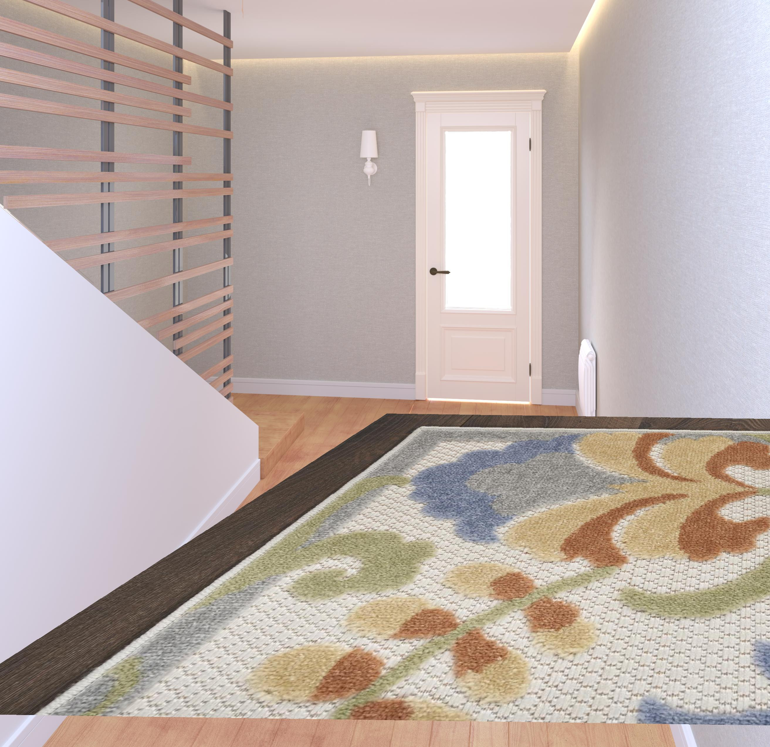 Nourison Aloha 2'3" x 8' Ivory Blue Outdoor Rug