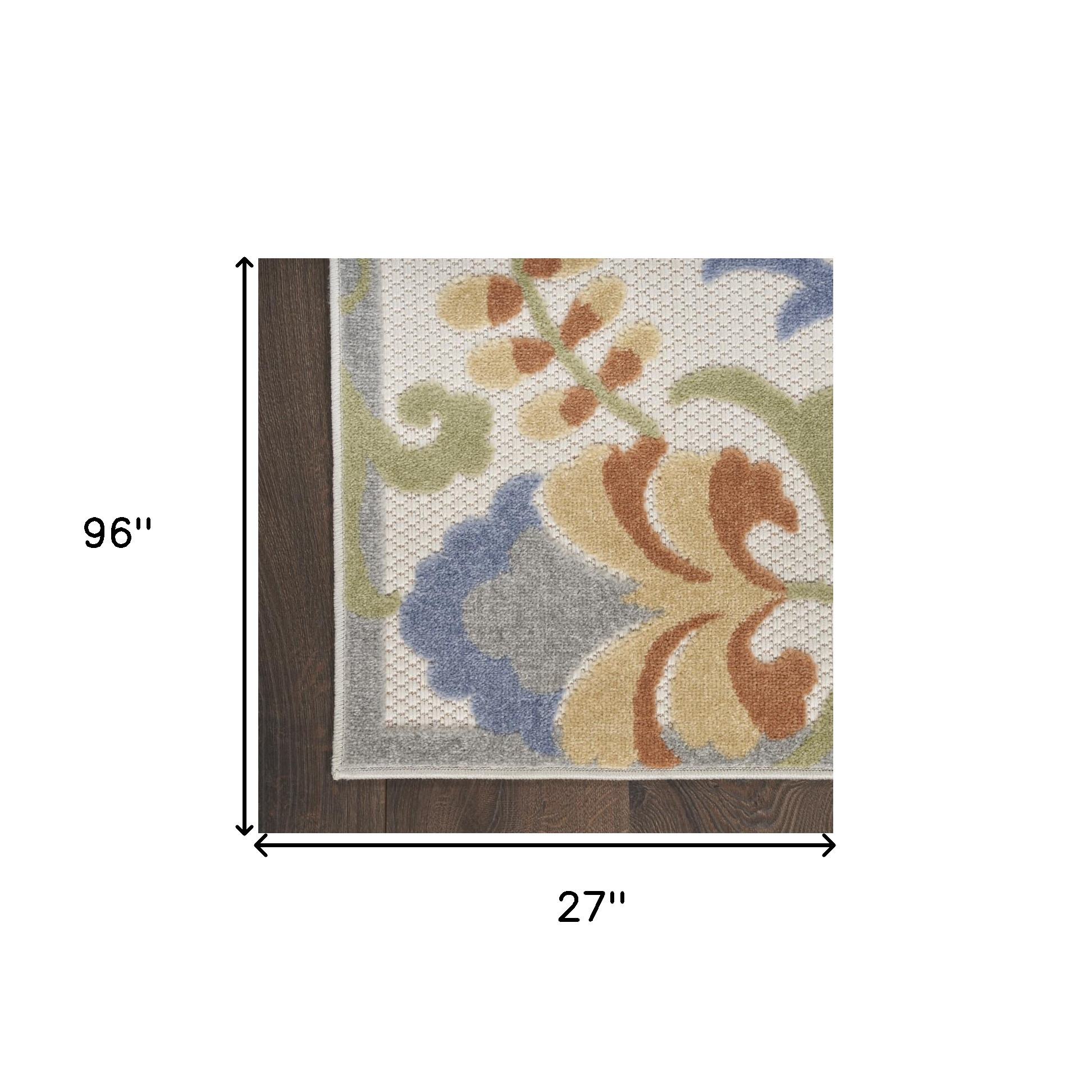 8' Runner Blue and Ivory Floral Indoor Outdoor Runner Rug