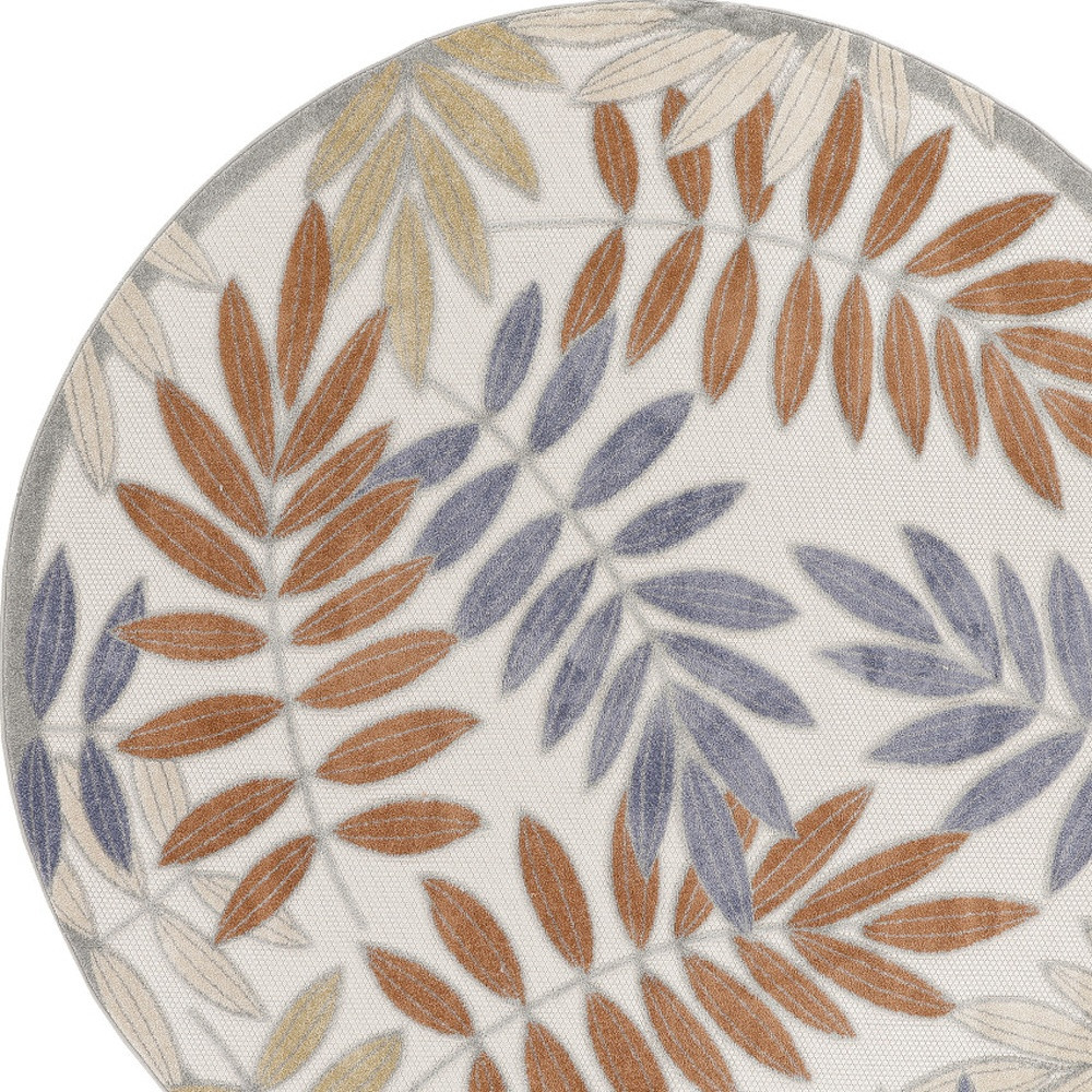 Add some artistry to your room with this 5-foot round blue and ivory round floral indoor outdoor area rug. This geometric round shaped rug features a floral pattern in blue and ivory that combines a good looking print with a unique and updated shape. The mix of shape, color, and design gives this rug refreshing visual interest. Place this area rug against a hardwood or tile floor and it will enliven your living space with style and sophistication. 63-inch H x 63-inch W x 0.25-inch D