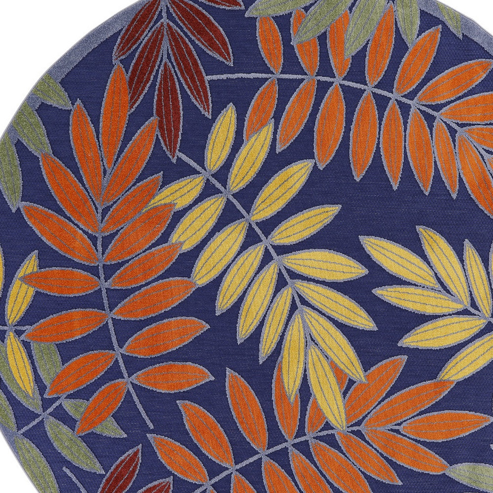 floral indoor outdoor area rug, indoor outdoor area rug, outdoor area rug, blue orange round floral indoor, round floral indoor outdoor area |