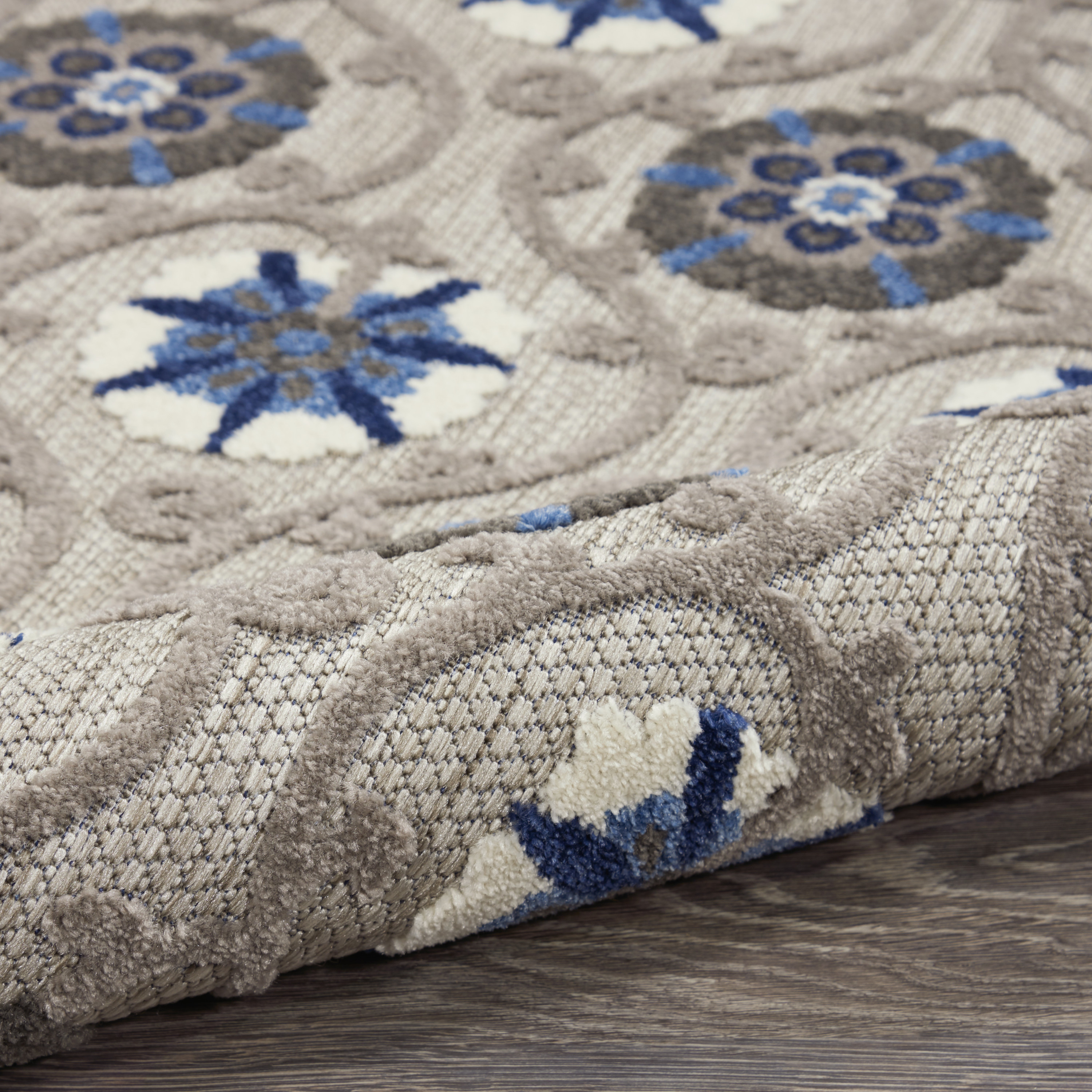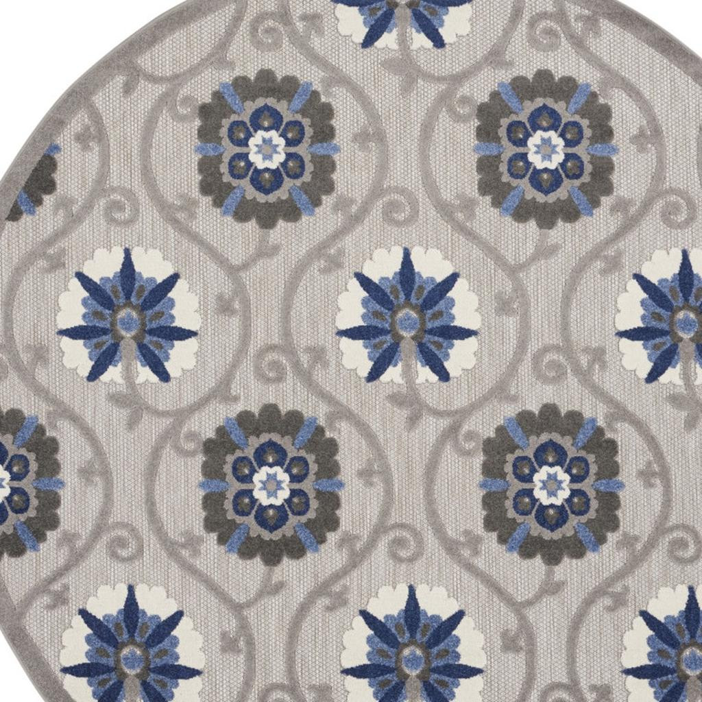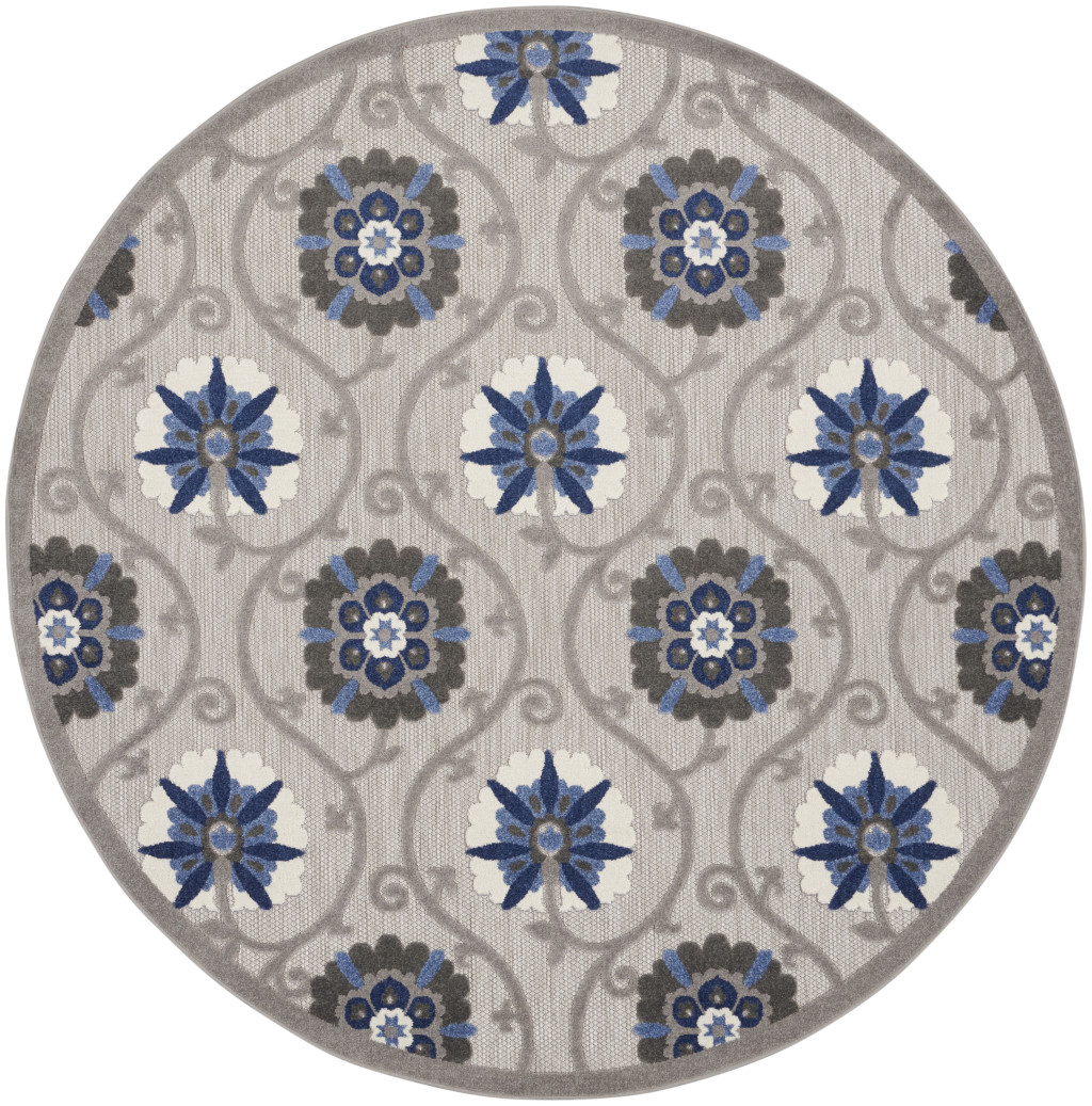 floral indoor outdoor area rug, indoor outdoor area rug, outdoor area rug, blue gray round floral indoor, gray round floral indoor outdoor |