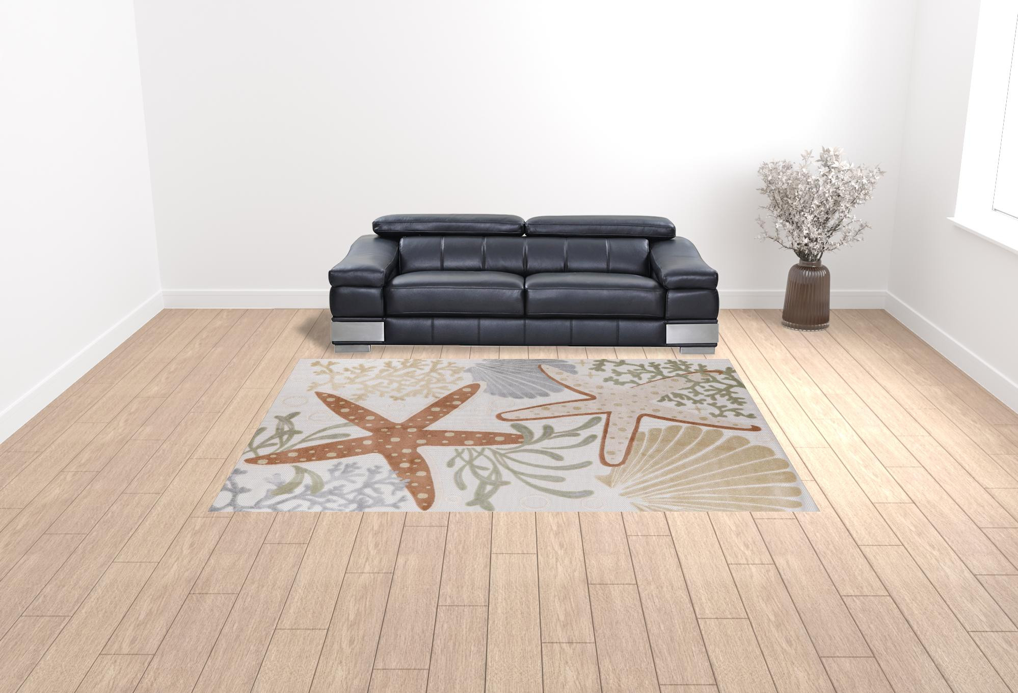 Add great coloration and comfortable texture to your space with this 9-foot x 12-foot cream coral indoor outdoor area rug. This rectangle shaped rug features a coral design in cream to give it visual interest. A classic shape marries with good looking design for your space the coloring of this rug adds a delightfully neutral tone to your home and will easily match with most any decor. Place this area rug against a hardwood or tile floor and it will enliven your living space with style and sophistication. 108-inch H x 144-inch W x 0.25-inch D