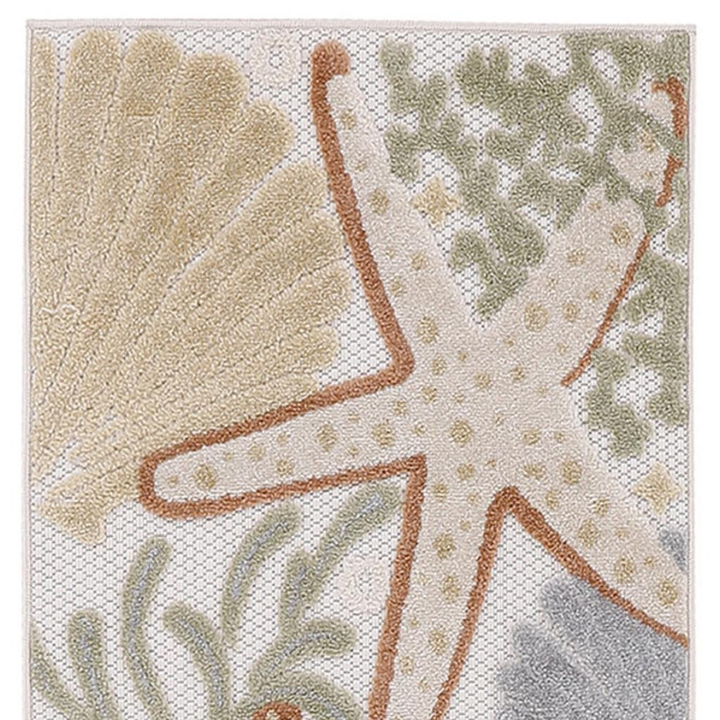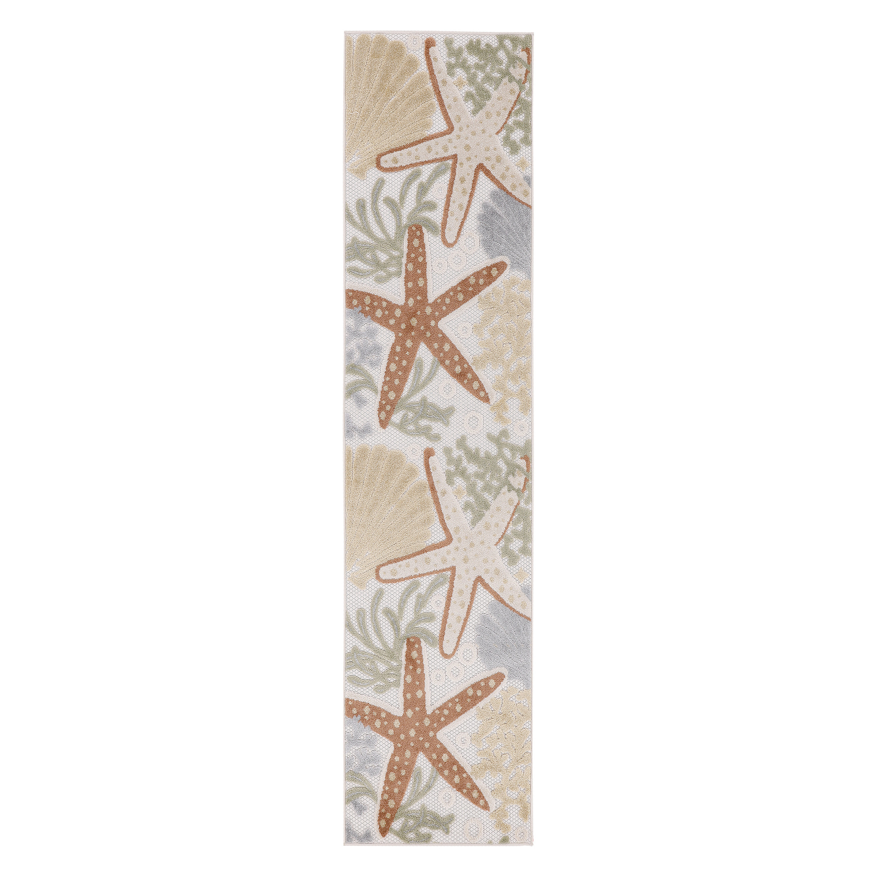 Set an inviting tone in your space with this 8-foot runner cream coral indoor outdoor runner rug. This runner shaped rug features a coral design in cream to give it visual interest. A classic shape marries with good looking design for your space the coloring of this rug adds a delightfully neutral tone to your home and will easily match with most any decor. Area rugs help to give warmth and sense of home to your space. 27-inch H x 96-inch W x 0.25-inch D