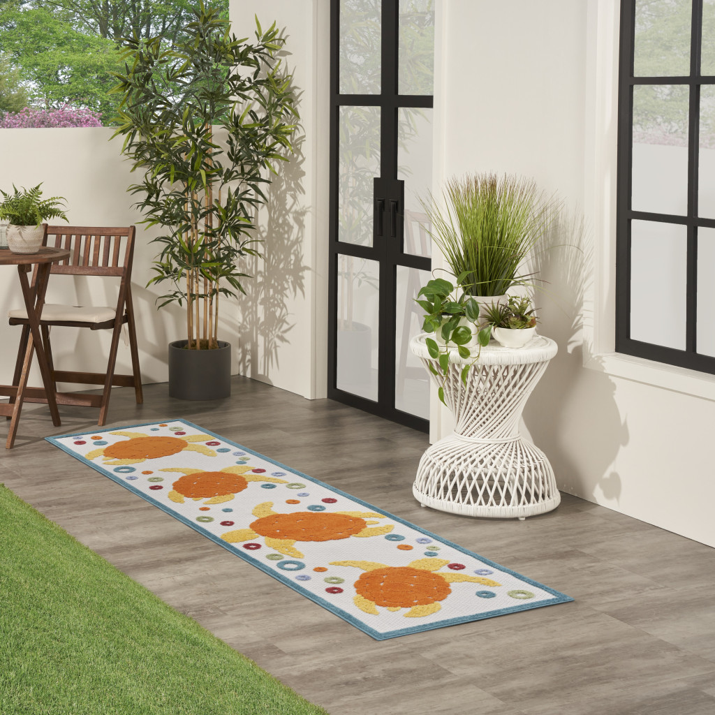 indoor outdoor runner rug, outdoor runner rug, print indoor outdoor runner rug, animal print indoor outdoor runner, runner green orange animal print |