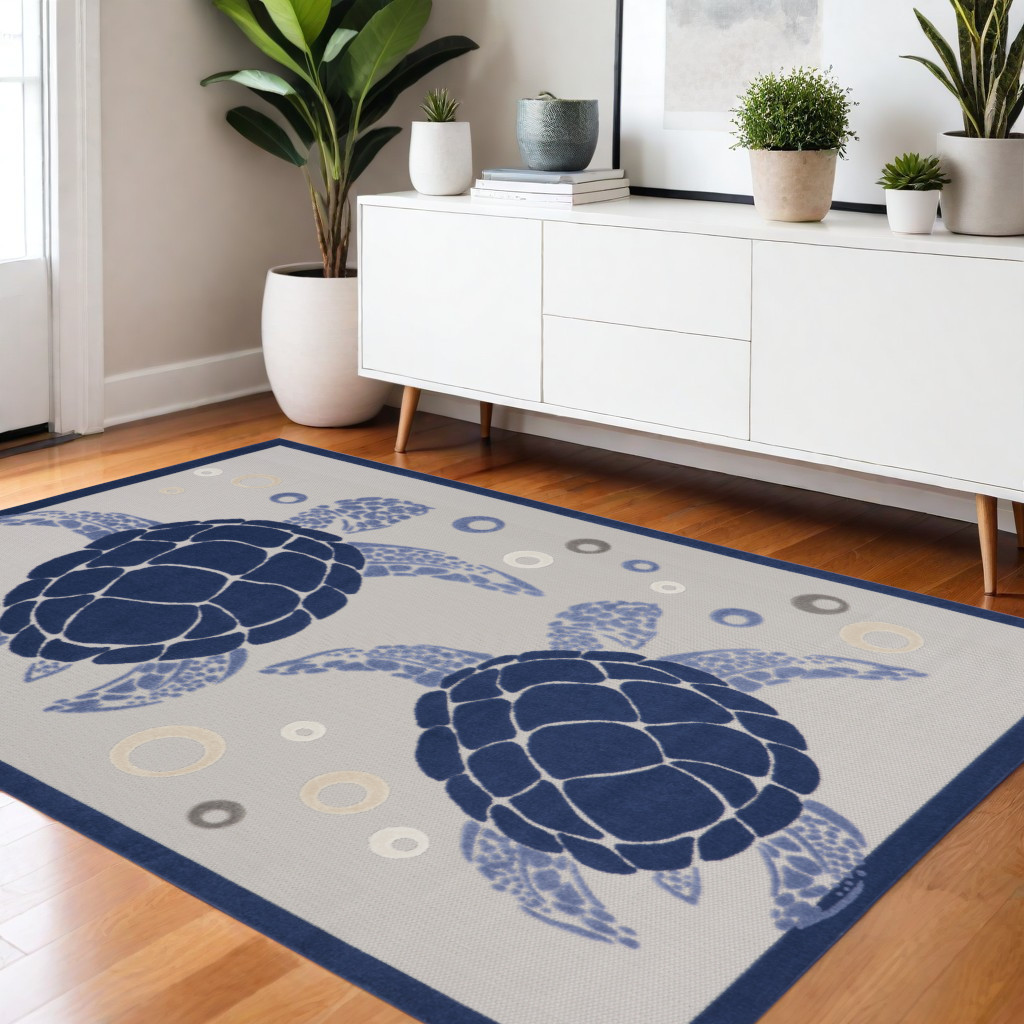 Add some artistry to your room with this 4-foot x 6-foot blue and gray animal print indoor outdoor area rug. This rectangle shaped rug features a animal print design in blue and gray to give it visual interest. A classic shape marries with good looking design for your space area rugs help to give warmth and sense of home to your space. 42-inch H x 66-inch W x 0.25-inch D