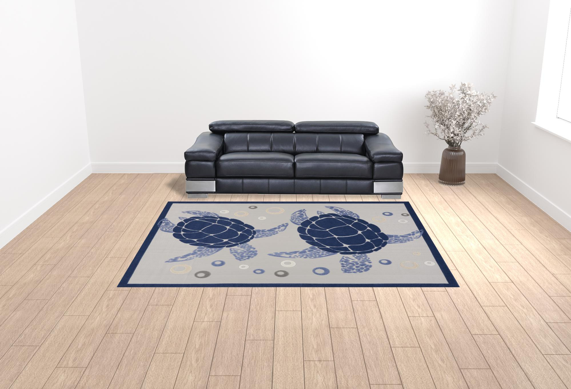 Set an inviting tone in your space with this 9-foot x 12-foot blue and gray animal print indoor outdoor area rug. This rectangle shaped rug features a animal print design in blue and gray to give it visual interest. A classic shape marries with good looking design for your space place this area rug against a hardwood or tile floor and it will enliven your living space with style and sophistication. 108-inch H x 144-inch W x 0.25-inch D