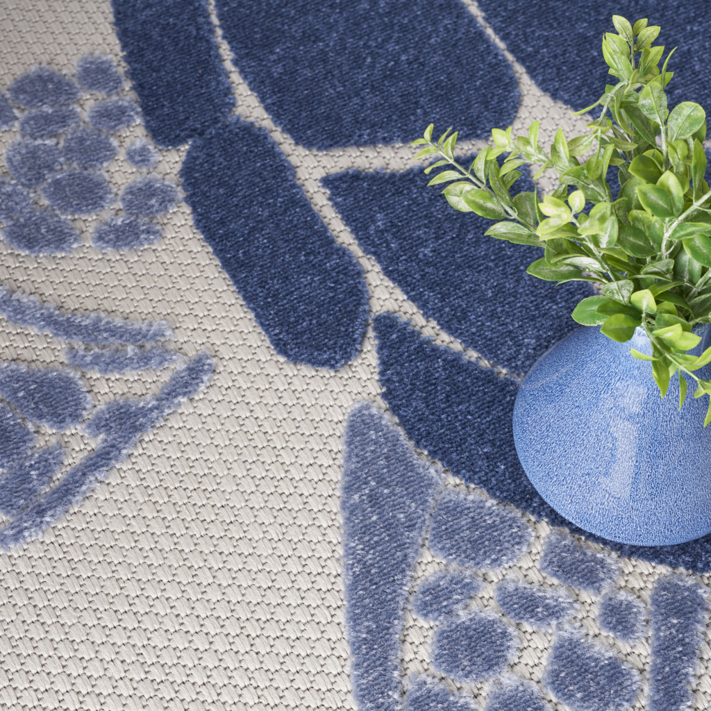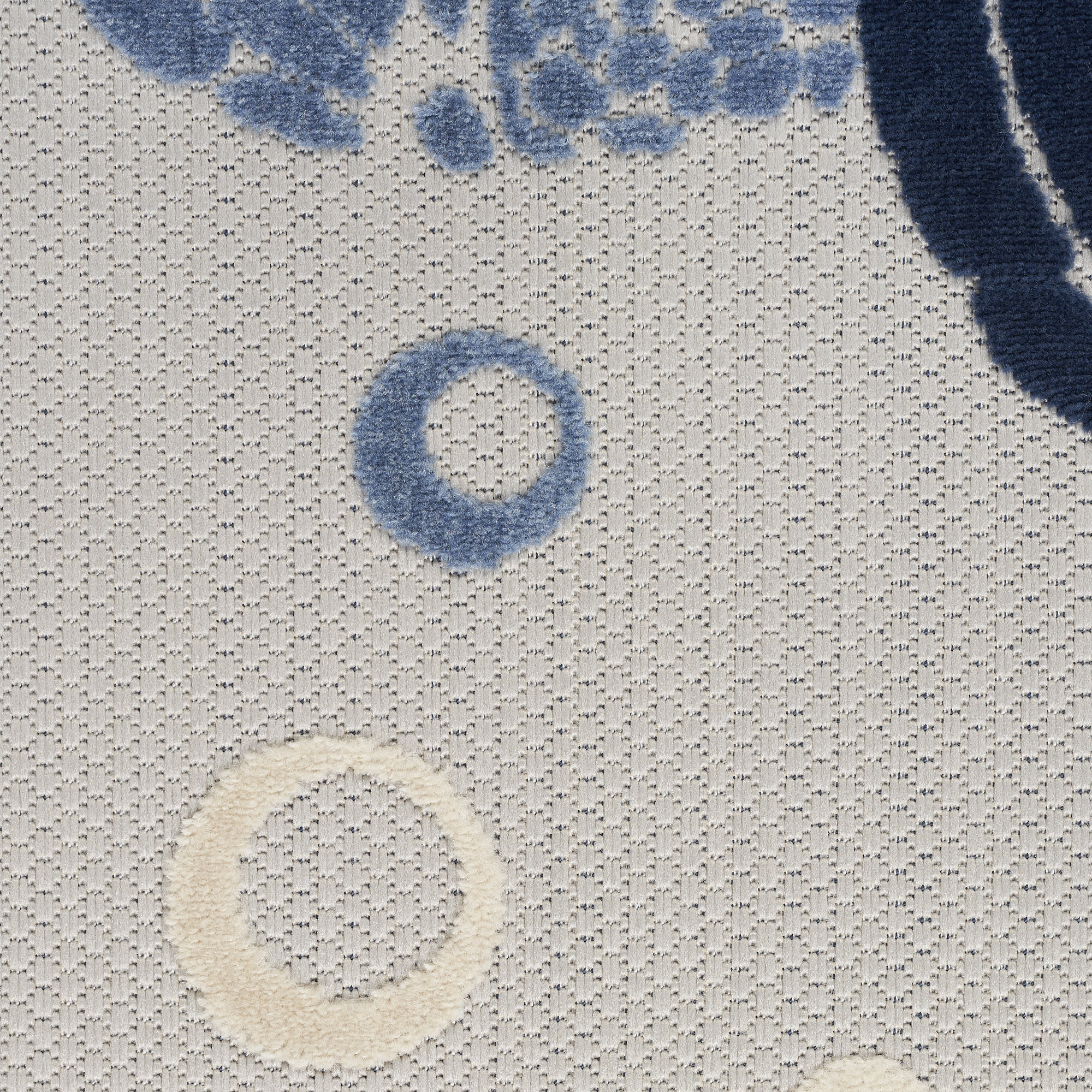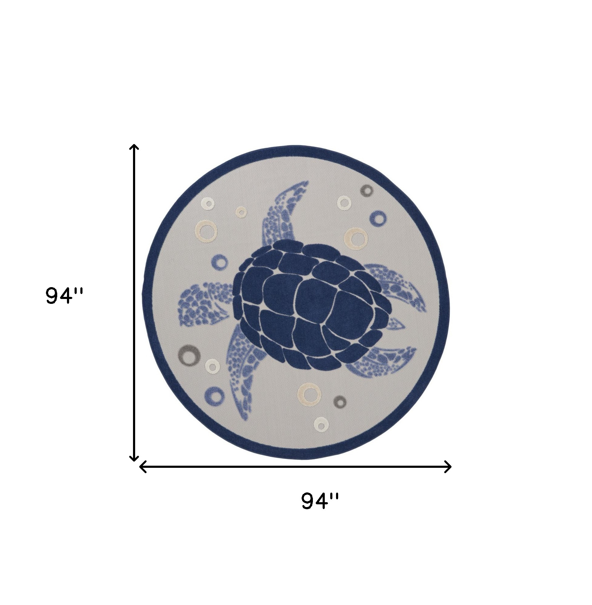 Set an inviting tone in your space with this 8-foot round blue and gray round animal print indoor outdoor area rug. This geometric round shaped rug features a animal print pattern in blue and gray that combines a good looking print with a unique and updated shape. The mix of shape, color, and design gives this rug refreshing visual interest. Area rugs help to give warmth and sense of home to your space. 94-inch H x 94-inch W x 0.25-inch D