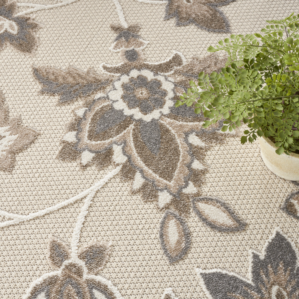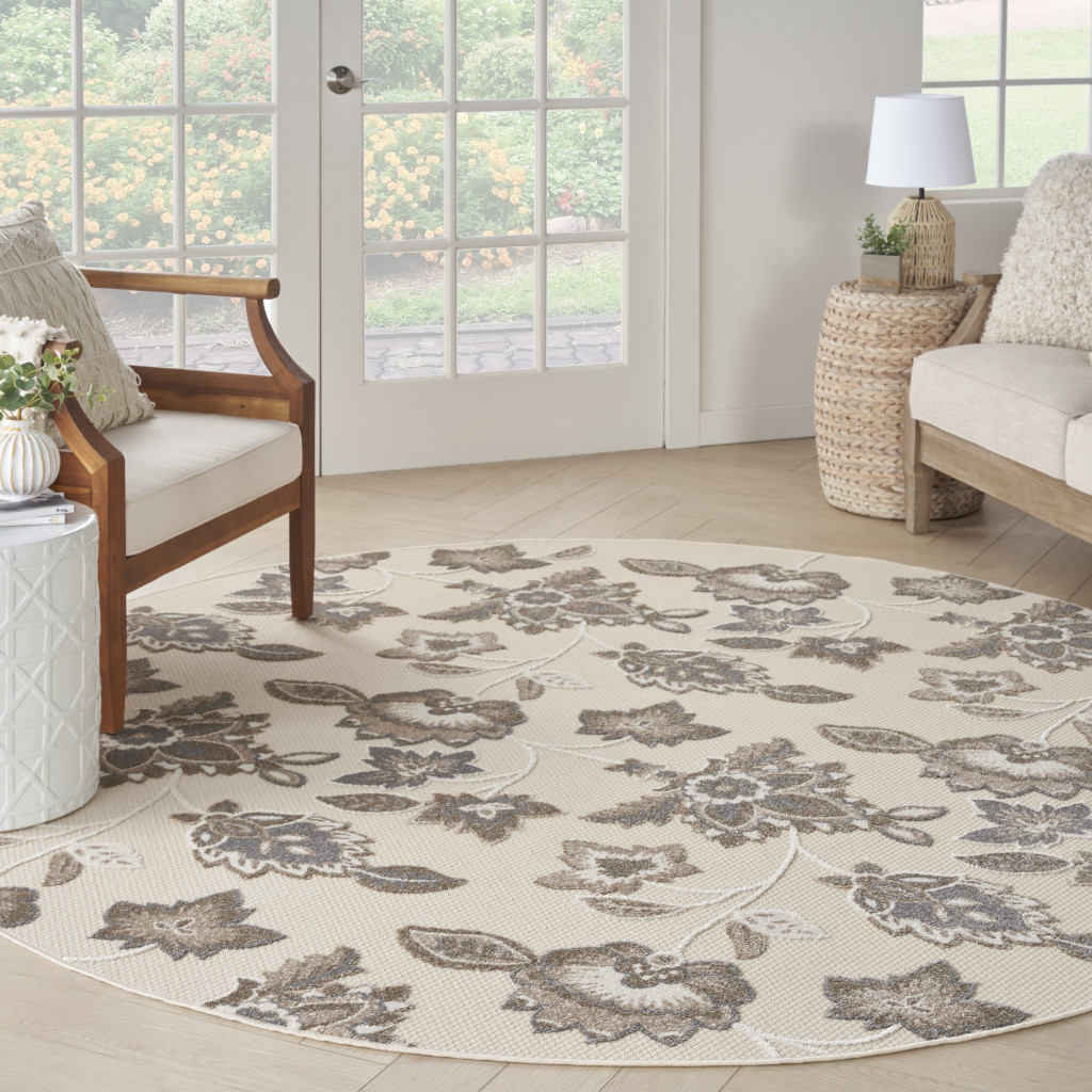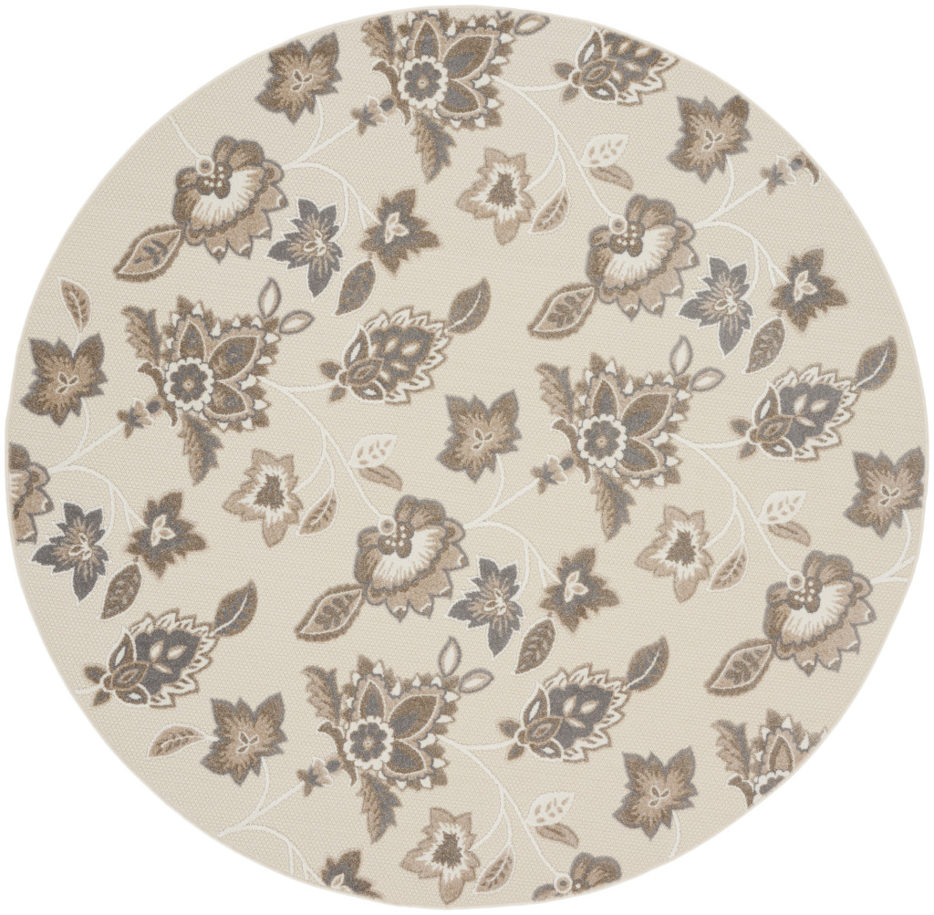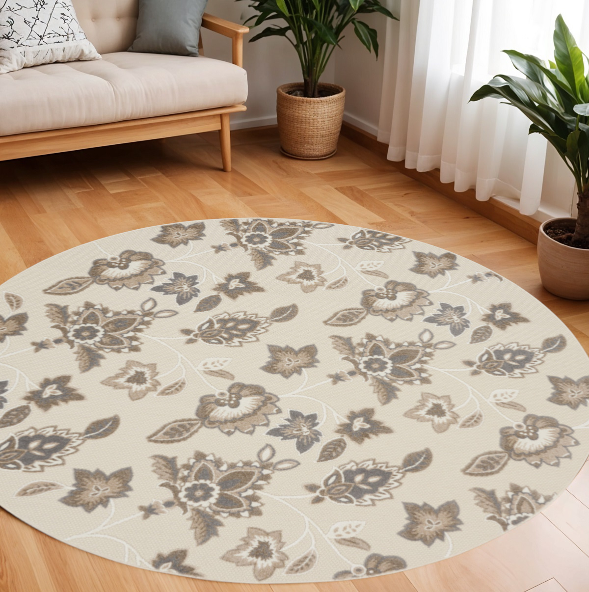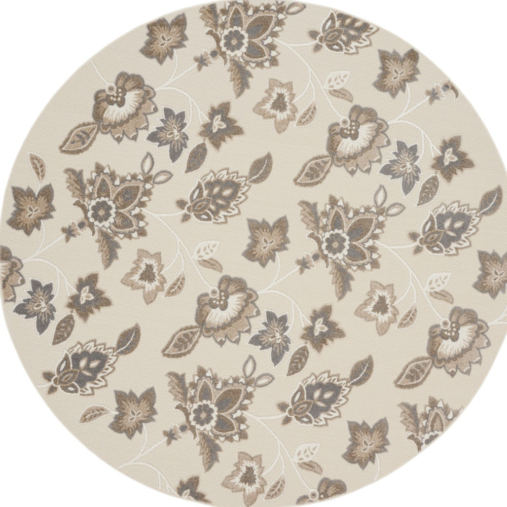 floral indoor outdoor area rug, indoor outdoor area rug, outdoor area rug, beige brown round floral indoor, round floral indoor outdoor area |