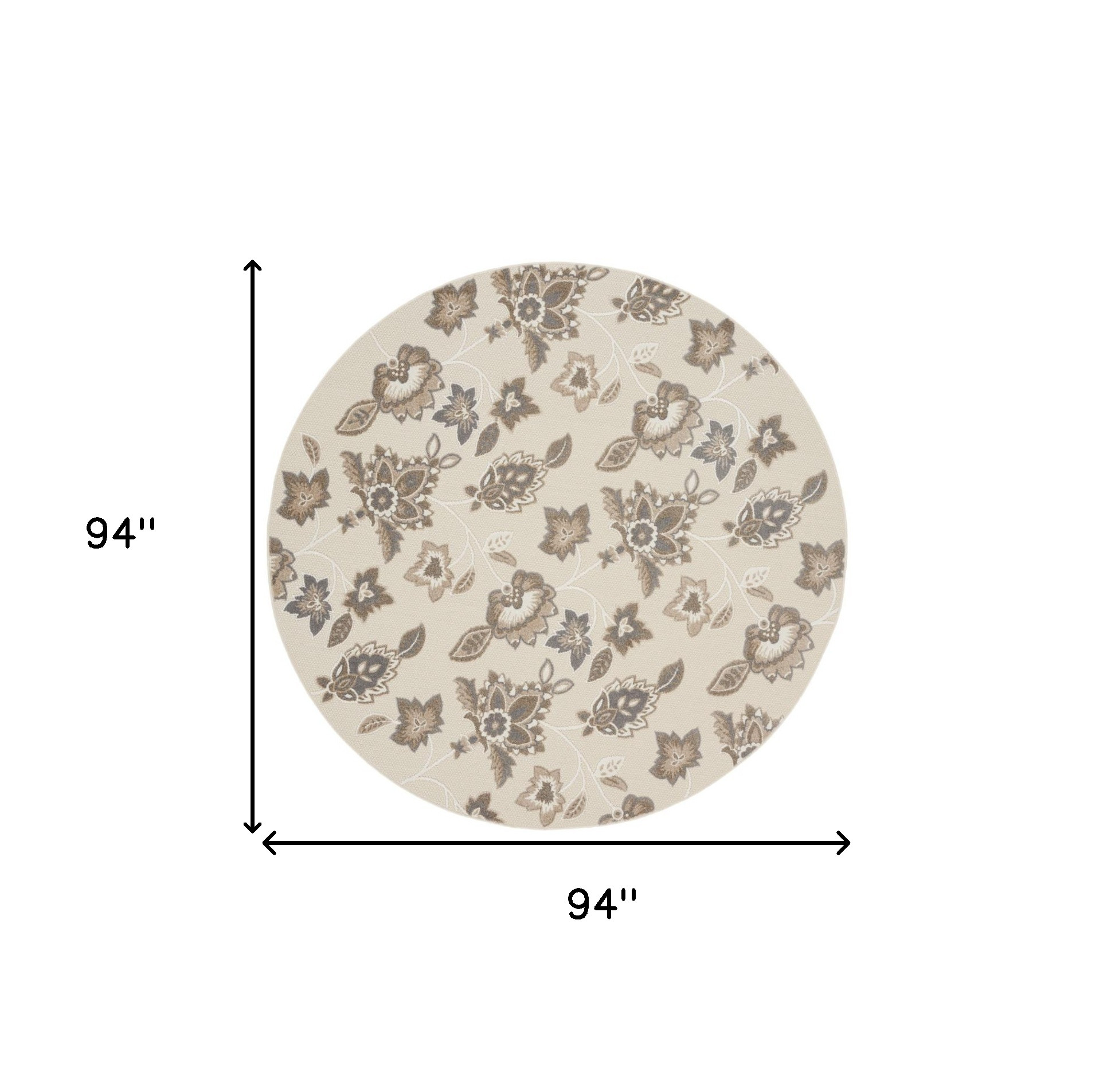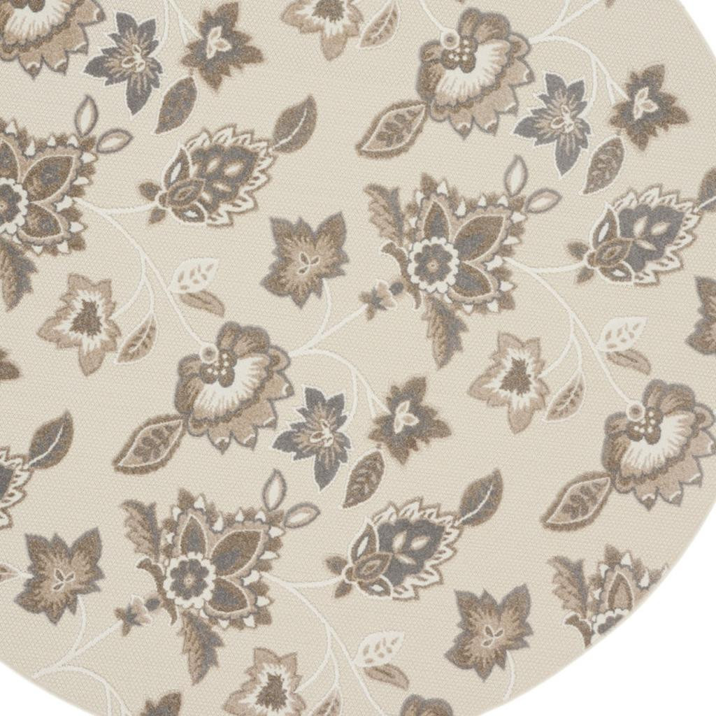 Set an inviting tone in your space with this 8-foot round beige and brown round floral indoor outdoor area rug. This geometric round shaped rug features a floral pattern in beige and brown that combines a good looking print with a unique and updated shape. The mix of shape, color, and design gives this rug refreshing visual interest. Place this area rug against a hardwood or tile floor and it will enliven your living space with style and sophistication. 94-inch H x 94-inch W x 0.25-inch D