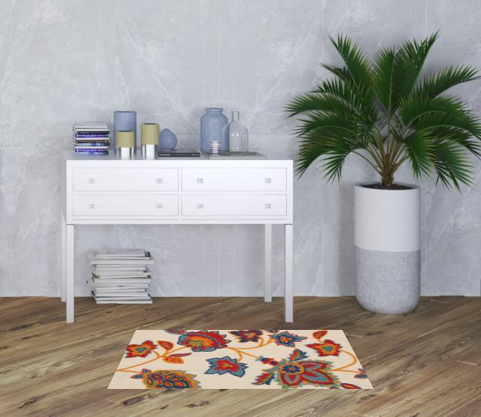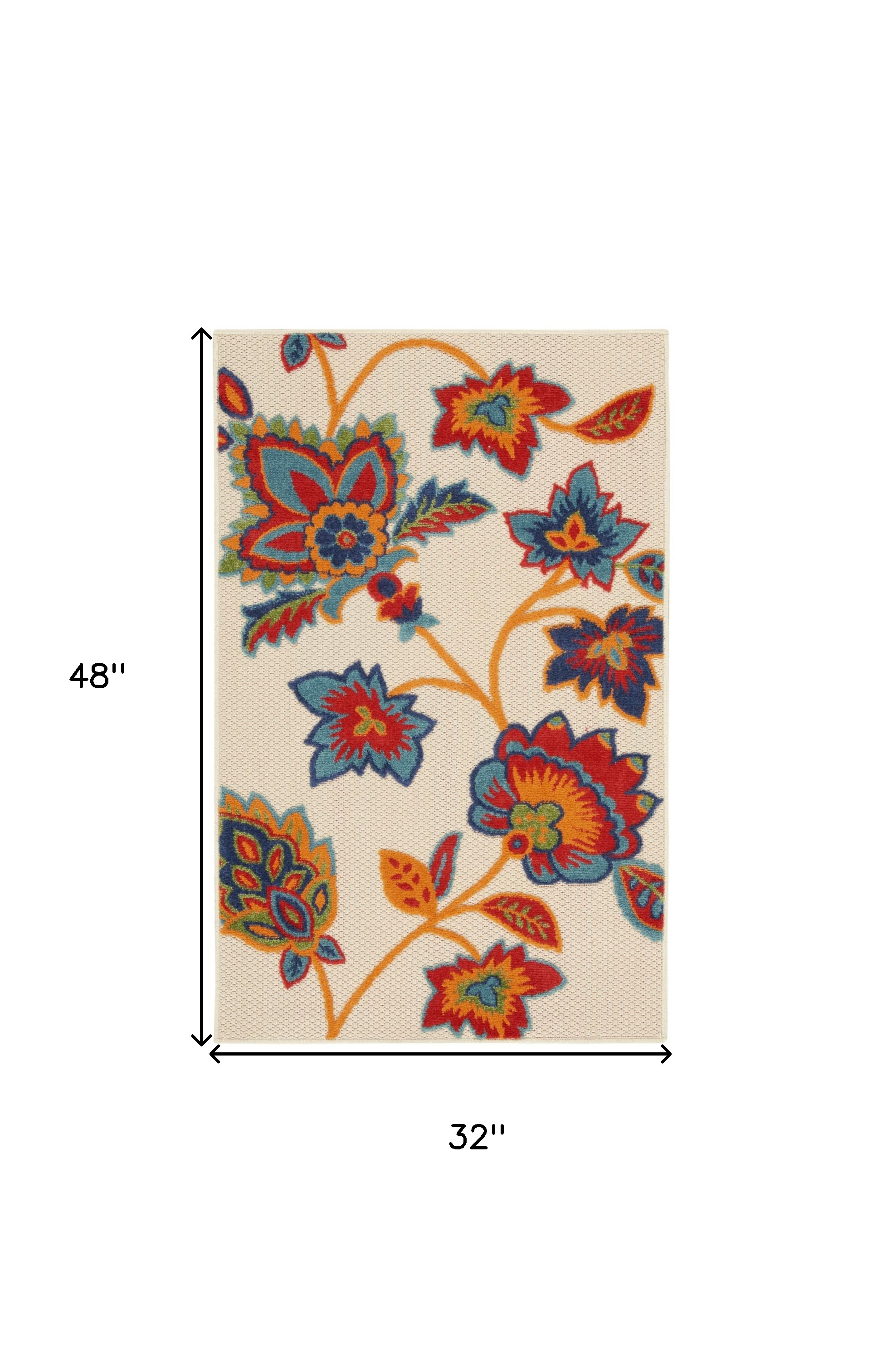 Add some artistry to your room with this 3-foot x 4-foot ivory green and red floral indoor outdoor area rug. This rectangle shaped rug features a floral design in ivory green and red to give it visual interest. A classic shape marries with good looking design for your space area rugs help to give warmth and sense of home to your space. 32-inch H x 48-inch W x 0.25-inch D