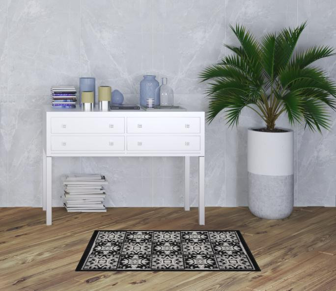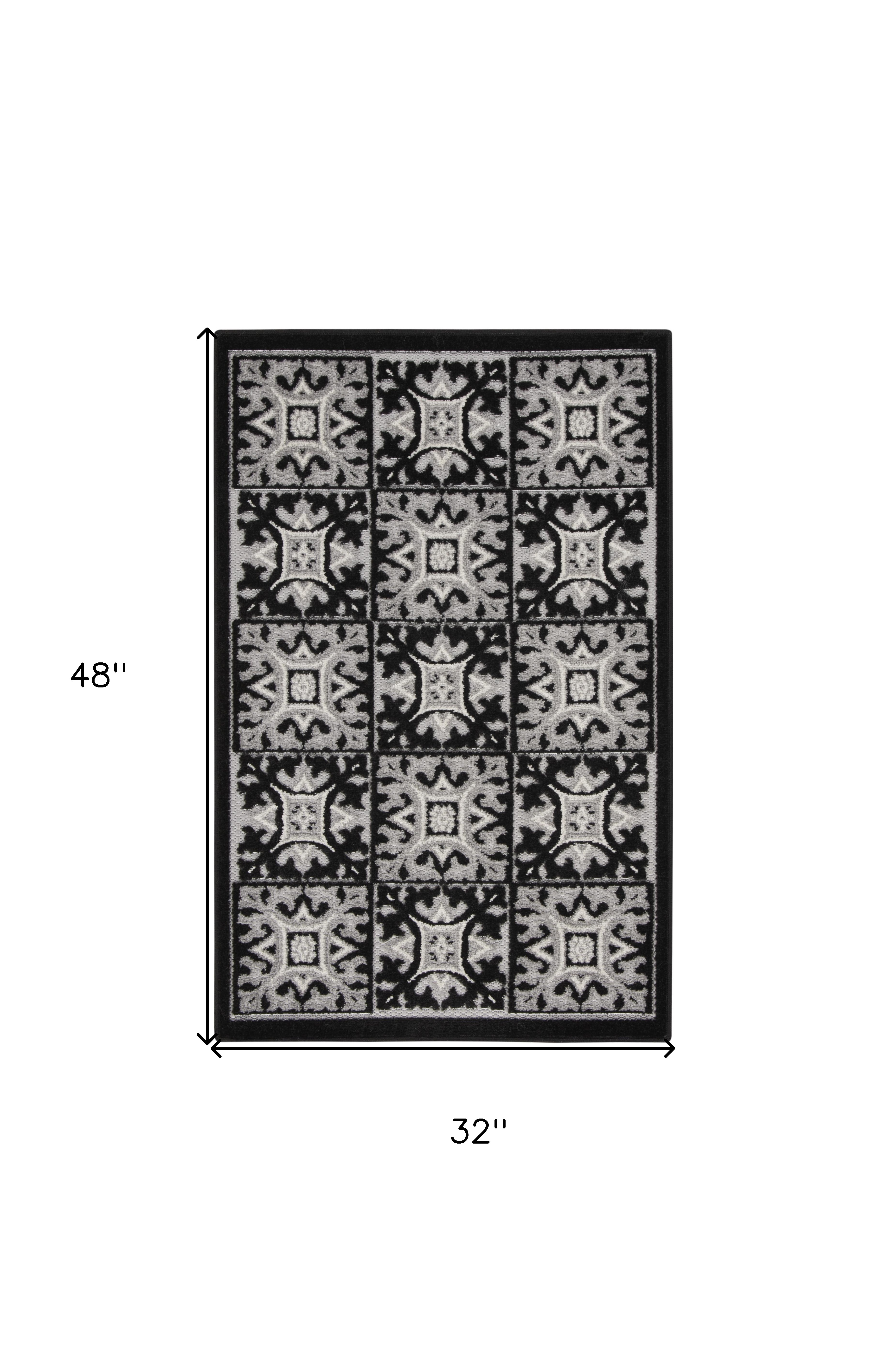 Add some artistry to your room with this 3-foot x 4-foot black and white geometric indoor outdoor area rug. This rectangle shaped rug features a geometric design in black and white to give it visual interest. A classic shape marries with good looking design for your space the coloration of this rug infuses an updated and modern vibe into your space. Place this area rug against a hardwood or tile floor and it will enliven your living space with style and sophistication. 32-inch H x 48-inch W x 0.25-inch D