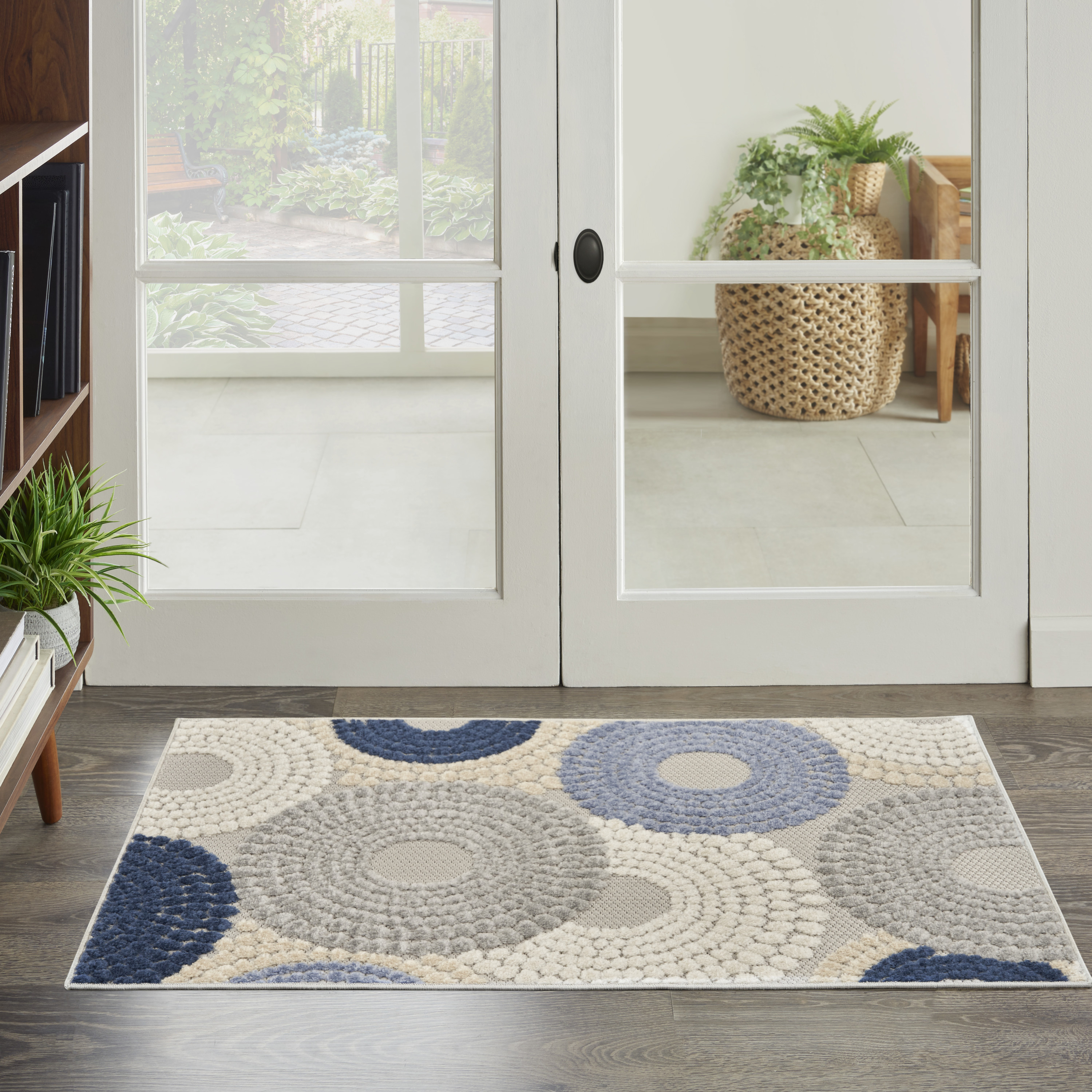indoor outdoor area rug, geometric indoor outdoor area rug, outdoor area rug, ivory blue gray geometric indoor, blue gray geometric indoor outdoor |