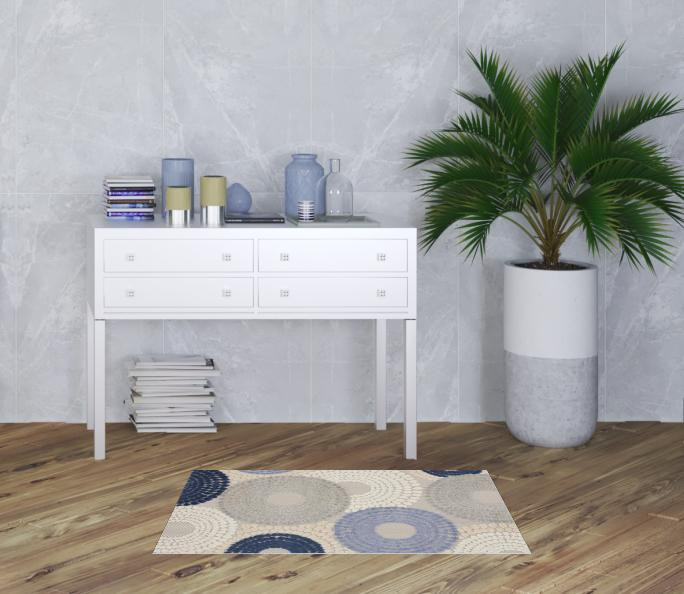 Add great coloration and comfortable texture to your space with this 3-foot x 4-foot ivory blue and gray geometric indoor outdoor area rug. This rectangle shaped rug features a geometric design in ivory blue and gray to give it visual interest. A classic shape marries with good looking design for your space area rugs help to give warmth and sense of home to your space. 32-inch H x 48-inch W x 0.25-inch D