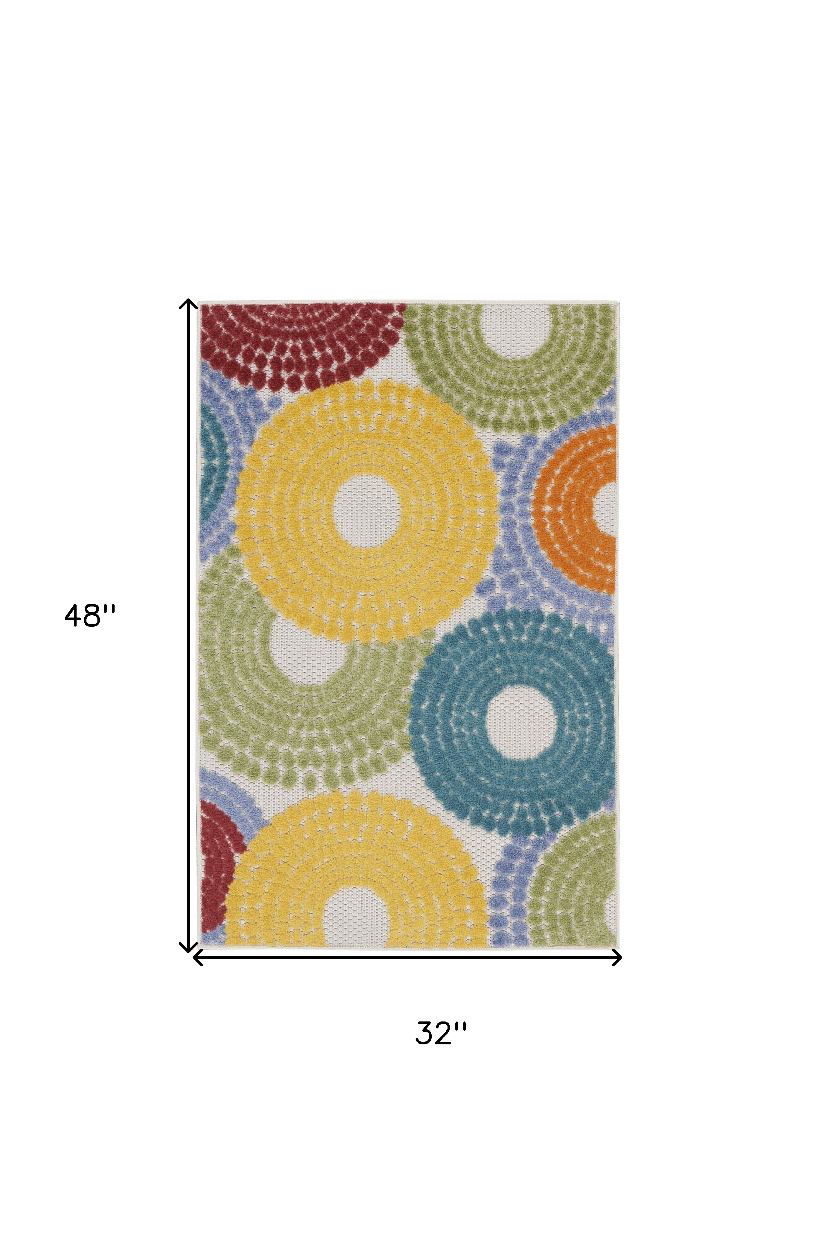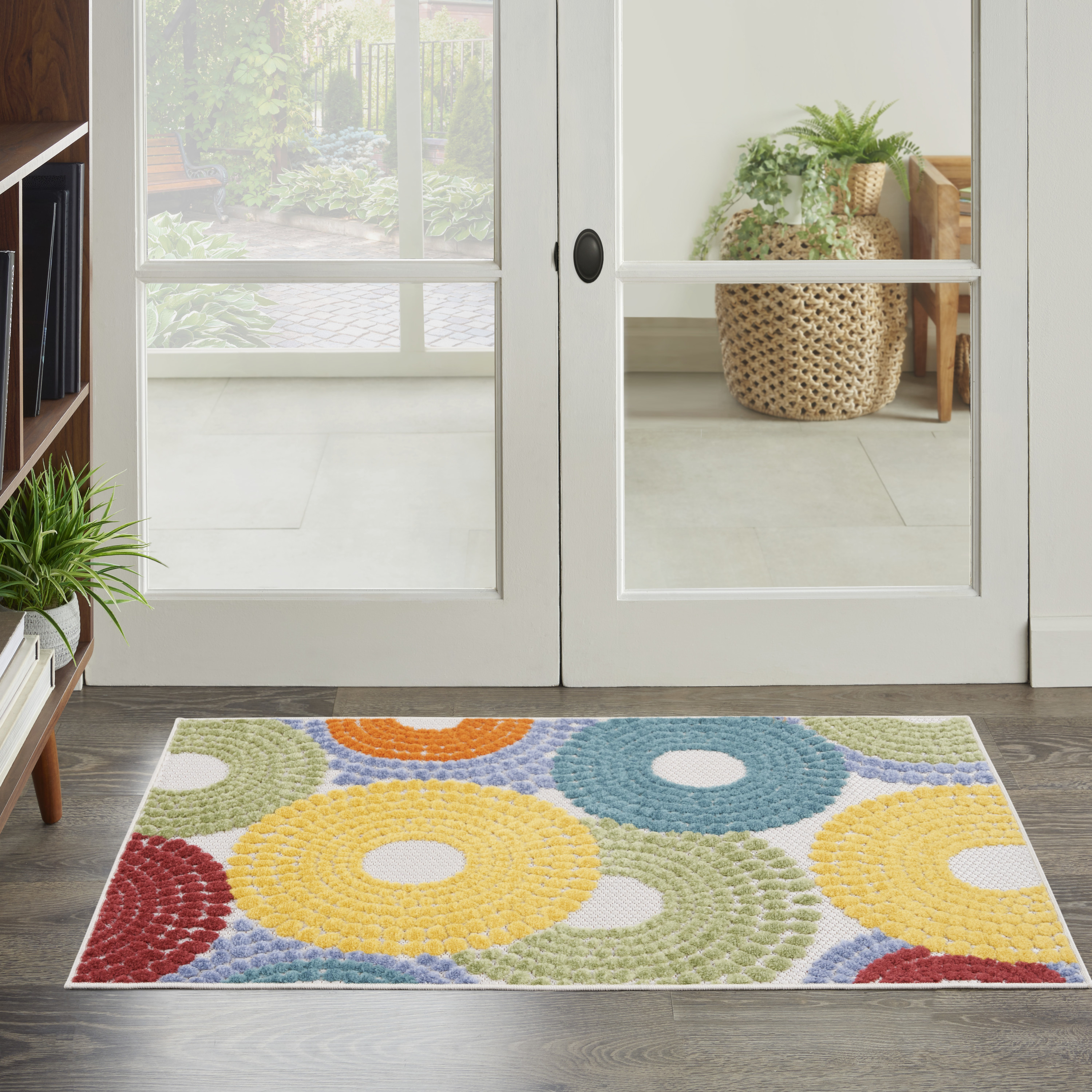 Add some artistry to your room with this 3-foot x 4-foot blue and green geometric indoor outdoor area rug. This rectangle shaped rug features a geometric design in blue and green to give it visual interest. A classic shape marries with good looking design for your space area rugs help to give warmth and sense of home to your space. 32-inch H x 48-inch W x 0.25-inch D