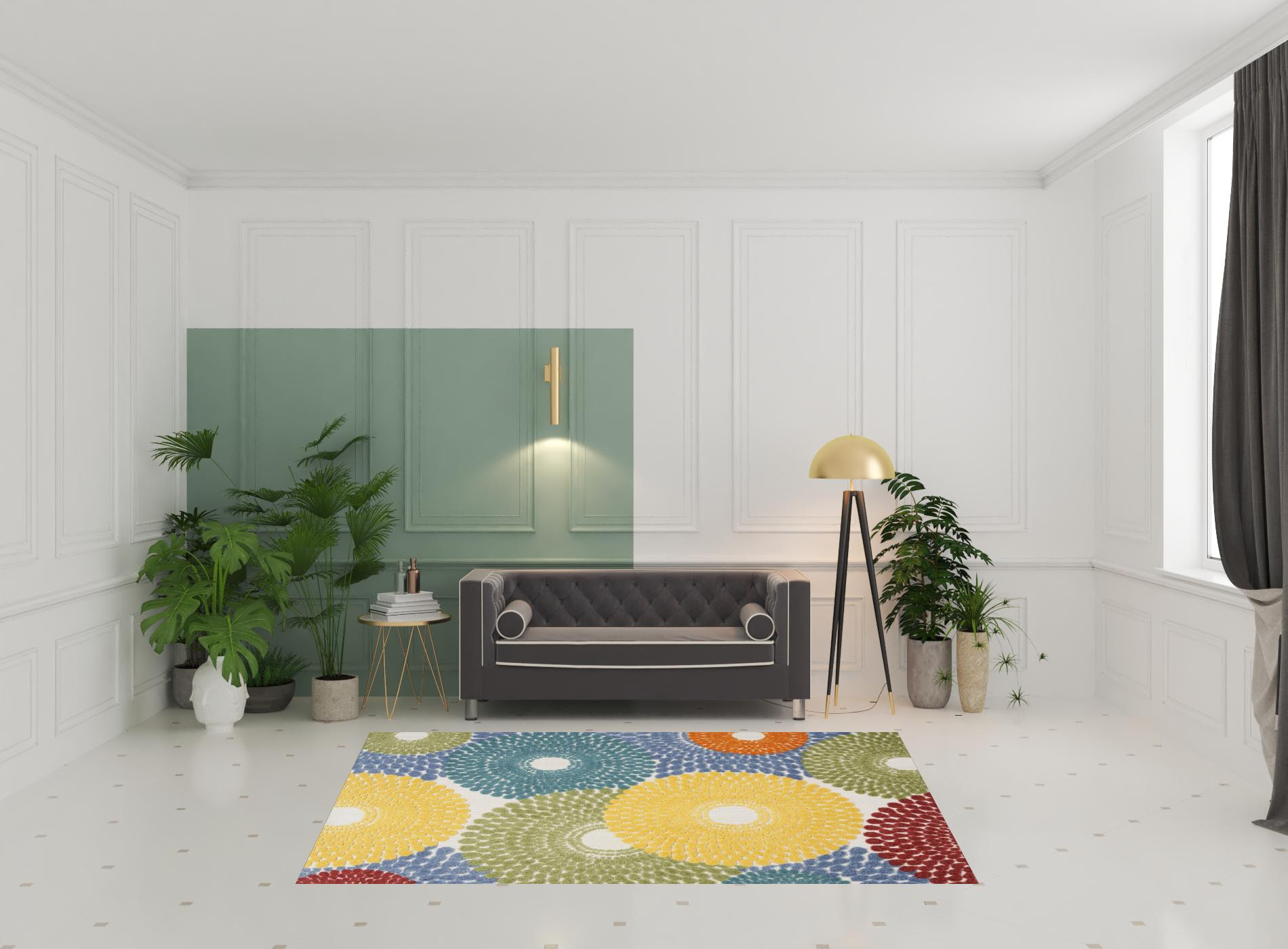 Add great coloration and comfortable texture to your space with this 6-foot x 9-foot blue and green geometric indoor outdoor area rug. This rectangle shaped rug features a geometric design in blue and green to give it visual interest. A classic shape marries with good looking design for your space place this area rug against a hardwood or tile floor and it will enliven your living space with style and sophistication. 72-inch H x 108-inch W x 0.25-inch D