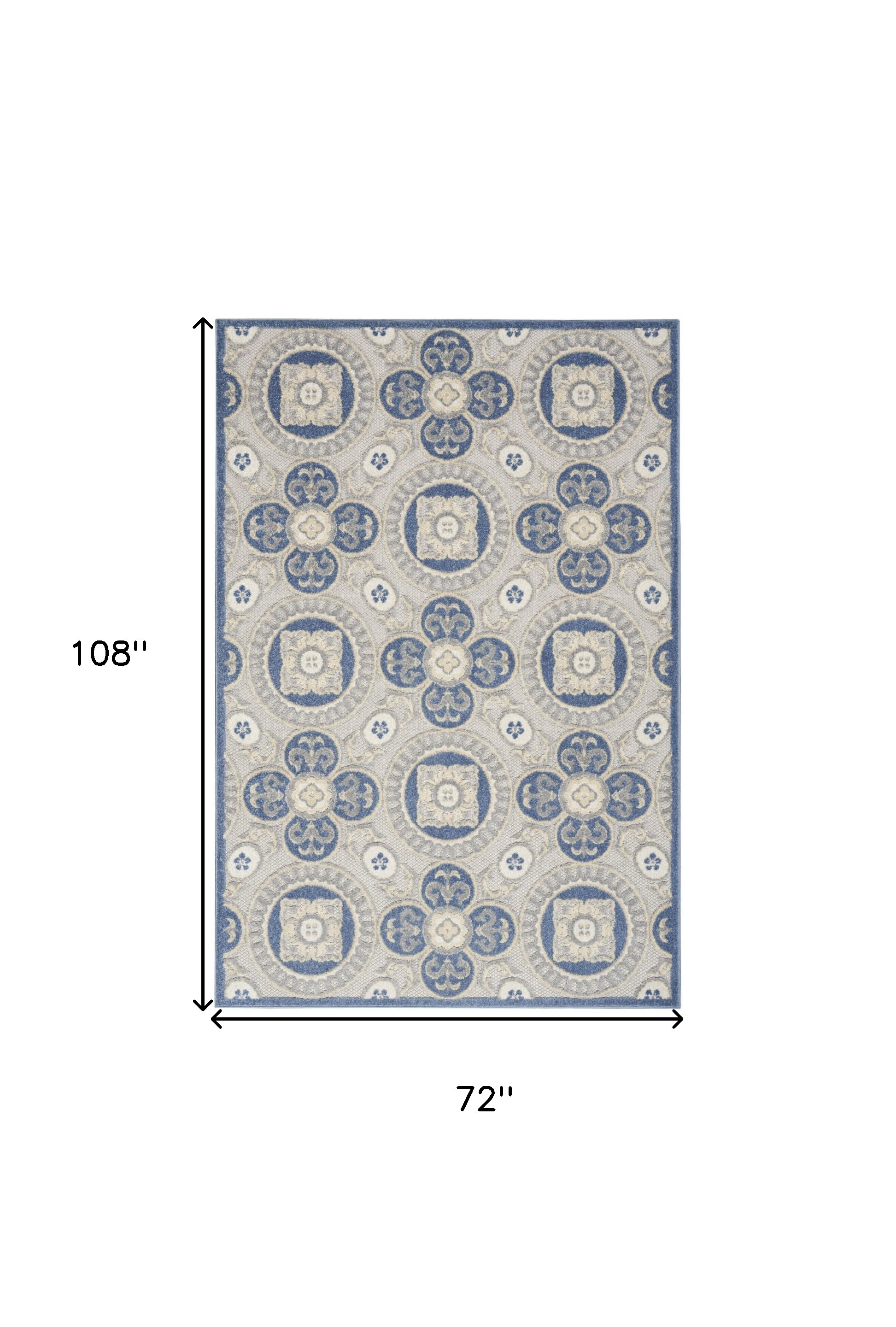 Set an inviting tone in your space with this 6-foot x 9-foot blue and gray geometric indoor outdoor area rug. This rectangle shaped rug features a geometric design in blue and gray to give it visual interest. A classic shape marries with good looking design for your space place this area rug against a hardwood or tile floor and it will enliven your living space with style and sophistication. 72-inch H x 108-inch W x 0.25-inch D