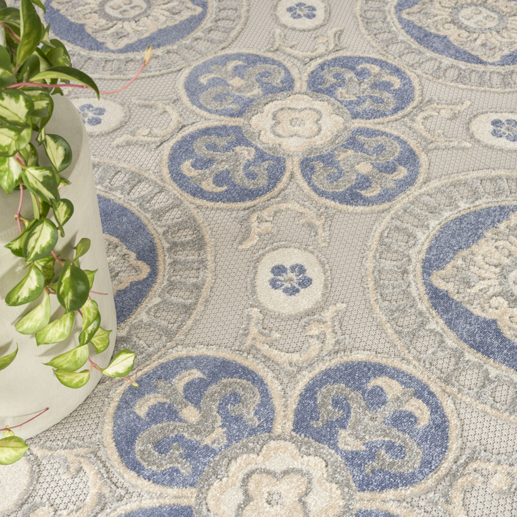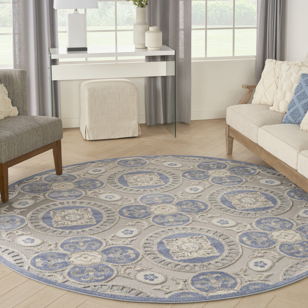 geometric indoor outdoor area rug, indoor outdoor area rug, outdoor area rug, blue gray round geometric indoor, round geometric indoor outdoor area |