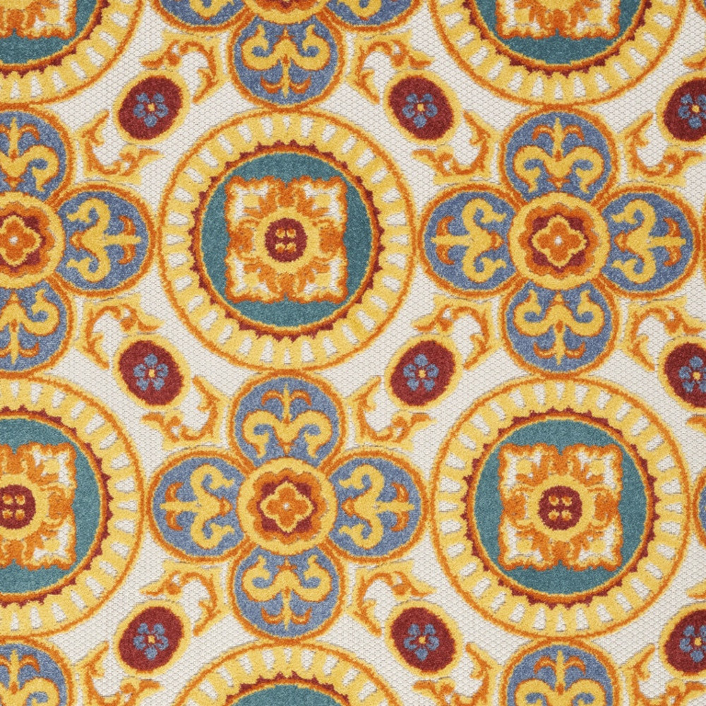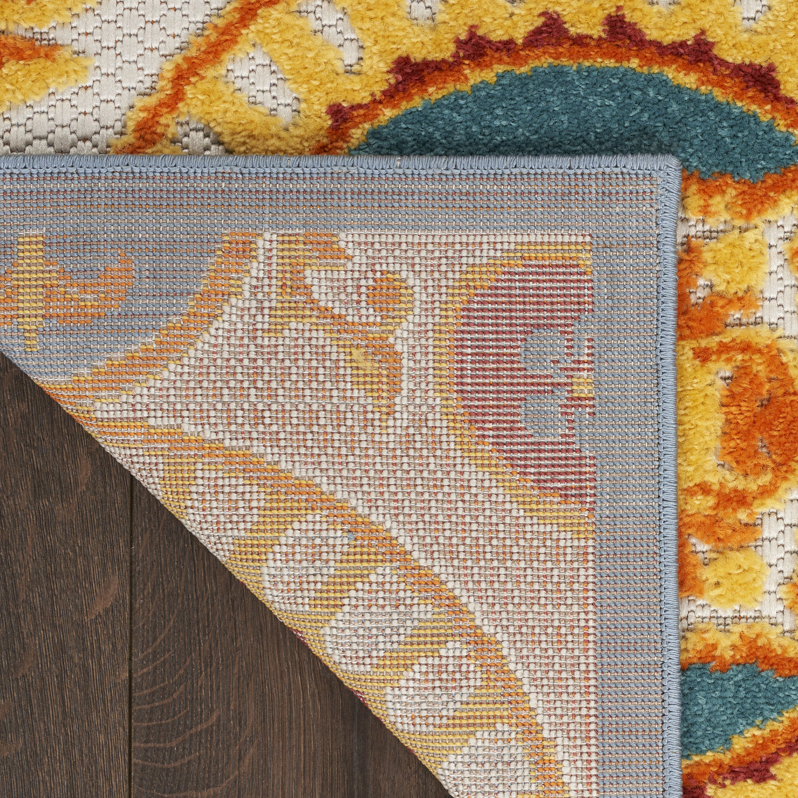 Set an inviting tone in your space with this 6-foot x 9-foot ivory blue and orange geometric indoor outdoor area rug. This rectangle shaped rug features a geometric design in ivory blue and orange to give it visual interest. A classic shape marries with good looking design for your space place this area rug against a hardwood or tile floor and it will enliven your living space with style and sophistication. 72-inch H x 108-inch W x 0.25-inch D
