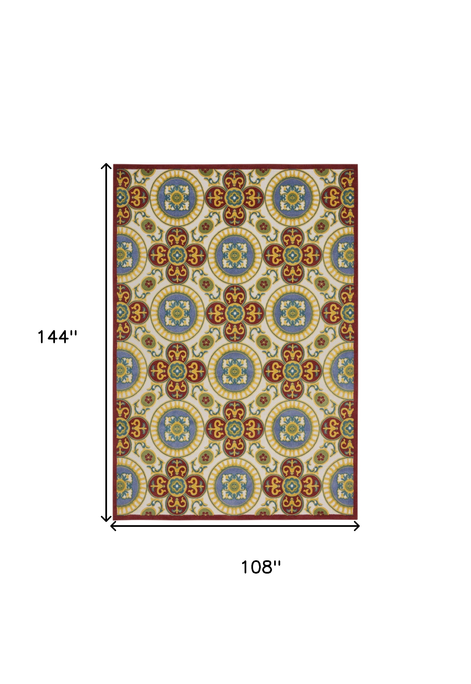Set an inviting tone in your space with this 9-foot x 12-foot red blue and white geometric indoor outdoor area rug. This rectangle shaped rug features a geometric design in red blue and white to give it visual interest. A classic shape marries with good looking design for your space area rugs help to give warmth and sense of home to your space. 108-inch H x 144-inch W x 0.25-inch D