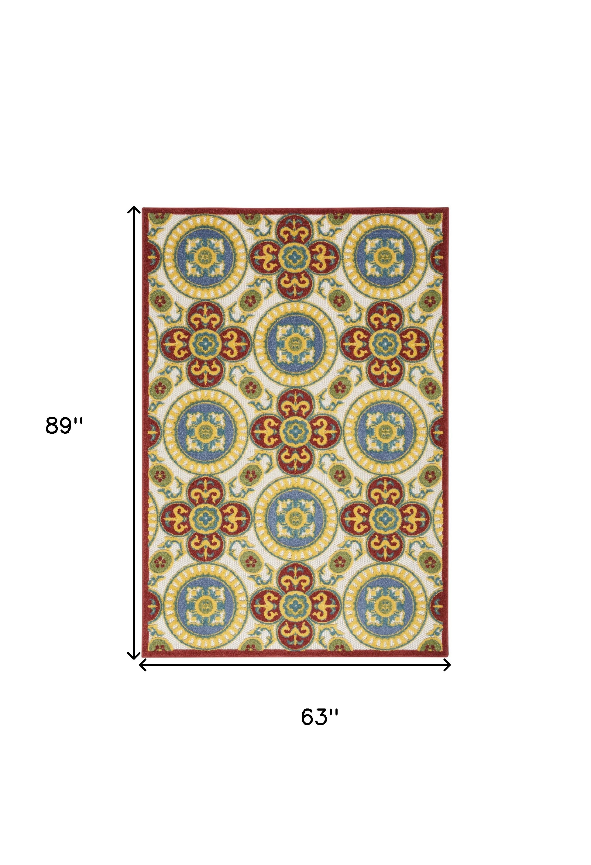 Set an inviting tone in your space with this 5-foot x 8-foot red blue and white geometric indoor outdoor area rug. This rectangle shaped rug features a geometric design in red blue and white to give it visual interest. A classic shape marries with good looking design for your space place this area rug against a hardwood or tile floor and it will enliven your living space with style and sophistication. 63-inch H x 89-inch W x 0.25-inch D
