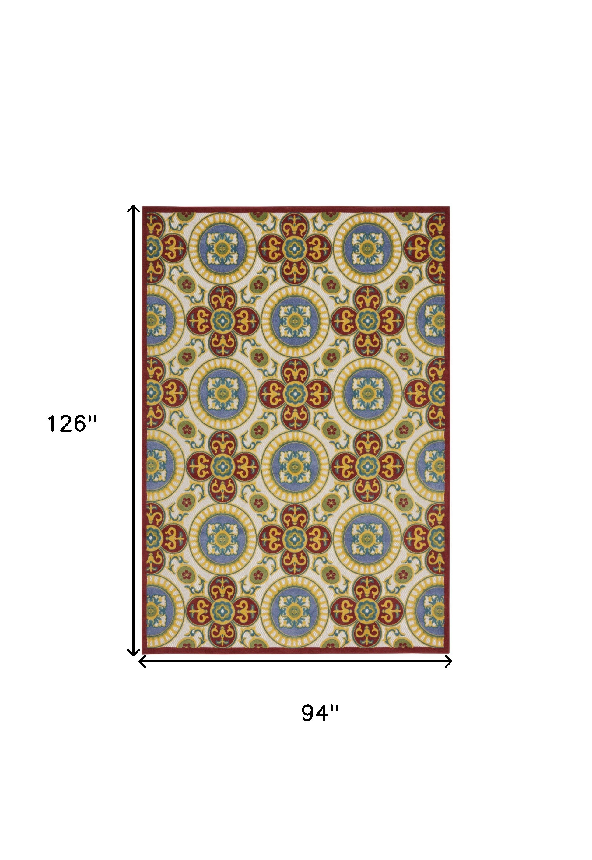 This 8-foot x 11-foot red blue and white geometric indoor outdoor area rug, is a great way to add warmth to a room. This rectangle shaped rug features a geometric design in red blue and white to give it visual interest. A classic shape marries with good looking design for your space area rugs help to give warmth and sense of home to your space. 94-inch H x 126-inch W x 0.25-inch D