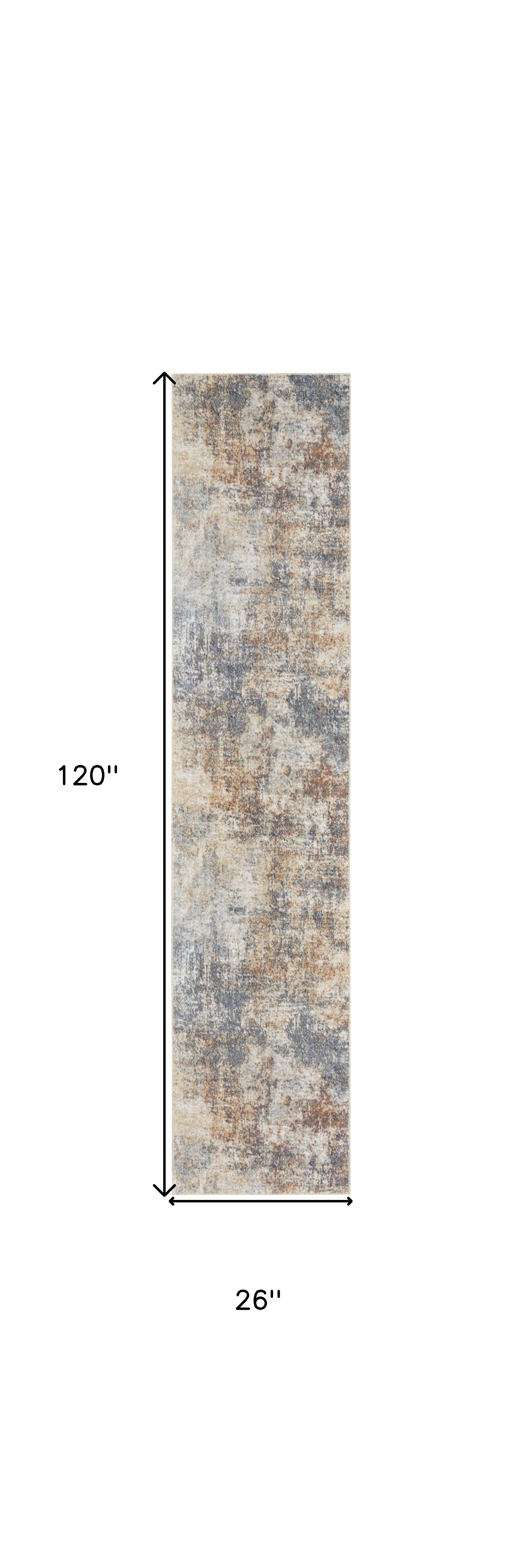 This 10-foot ivory blue and brown abstract runner rug, is a great way to add warmth to a room. Built to last, this rug crafted from polyester fibers is known for its durability and long lasting appeal. Rugs are a great way to showcase your style, hide imperfections, warm your home and reduce noise. This modern style runner makes a great accent for the hallway, in front of cabinets, in the laundry room, or any other space you need a narrow and long rug. 26.00-inch h x 120.00-inch w x 0.25-inch d.