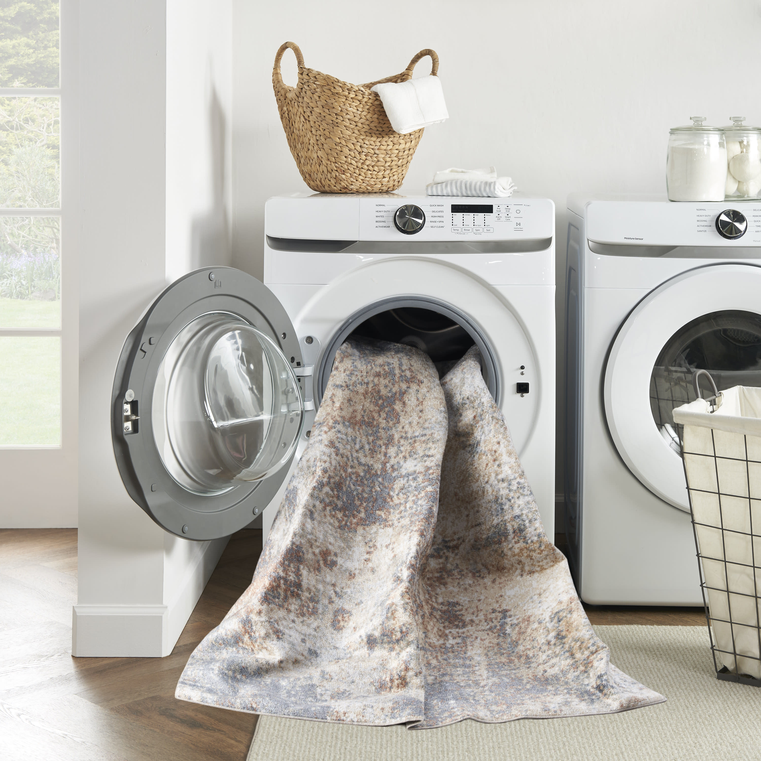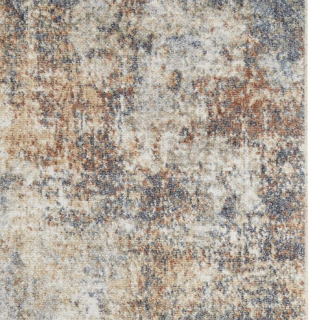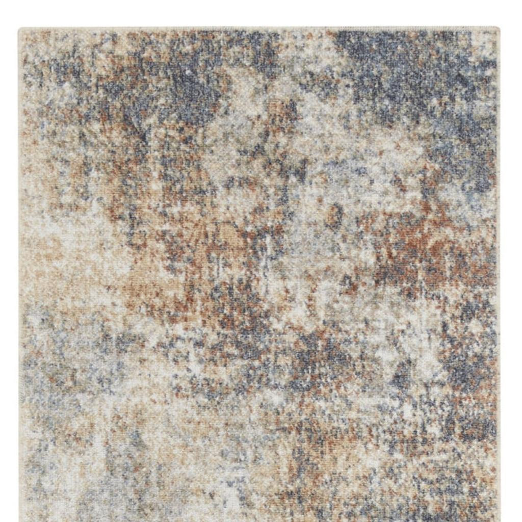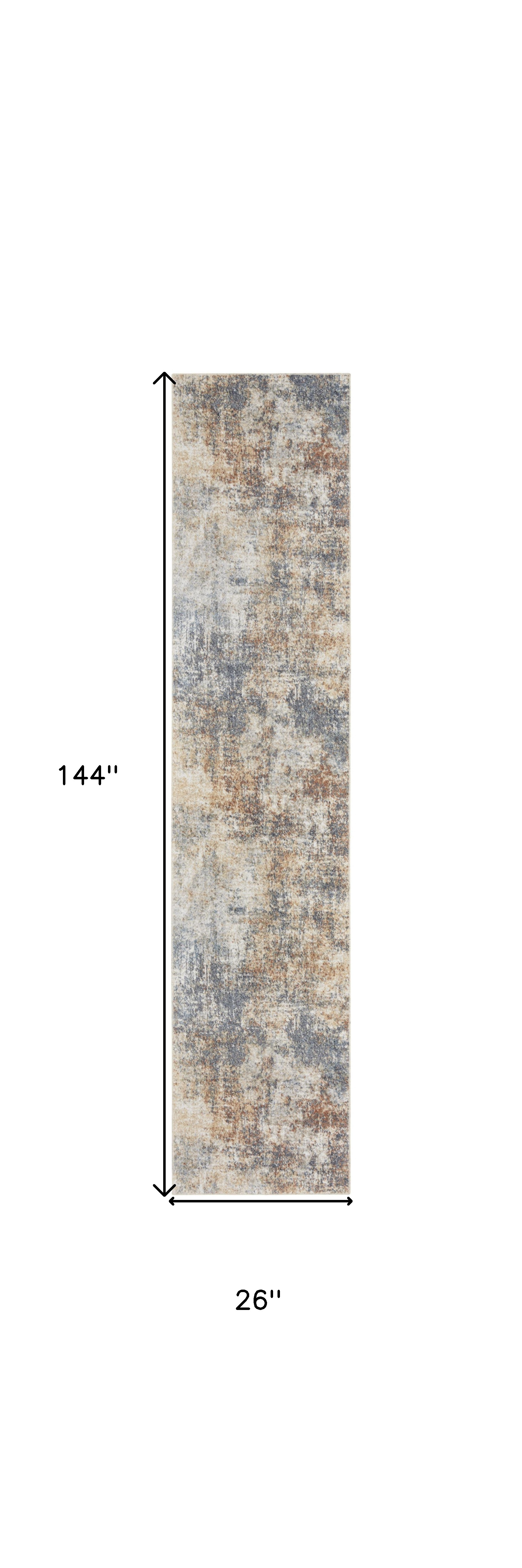 Add great coloration and comfortable texture to your space with this 12-foot ivory blue and brown abstract distressed runner rug. Built to last, this rug crafted from polyester fibers is known for its durability and long lasting appeal. Rugs are a great way to showcase your style, hide imperfections, warm your home and reduce noise. This rectangular shaped rug features a abstract design that will add a functional and decorative accent to your space. This modern style runner makes a great accent for the hallway, in front of cabinets, in the laundry room, or any other space you need a narrow and long rug. 26-inch h x 144-inch w x 0.25-inch d.