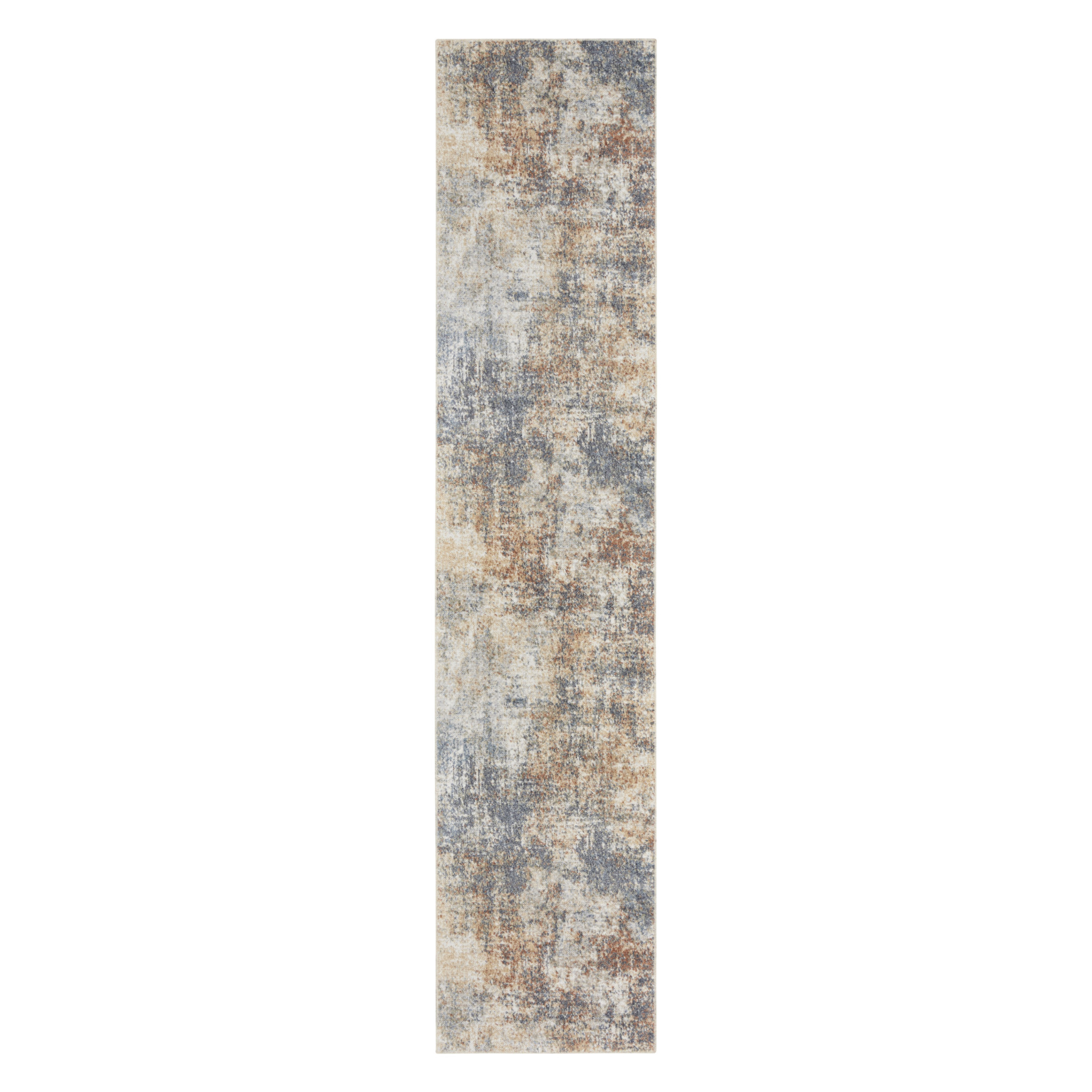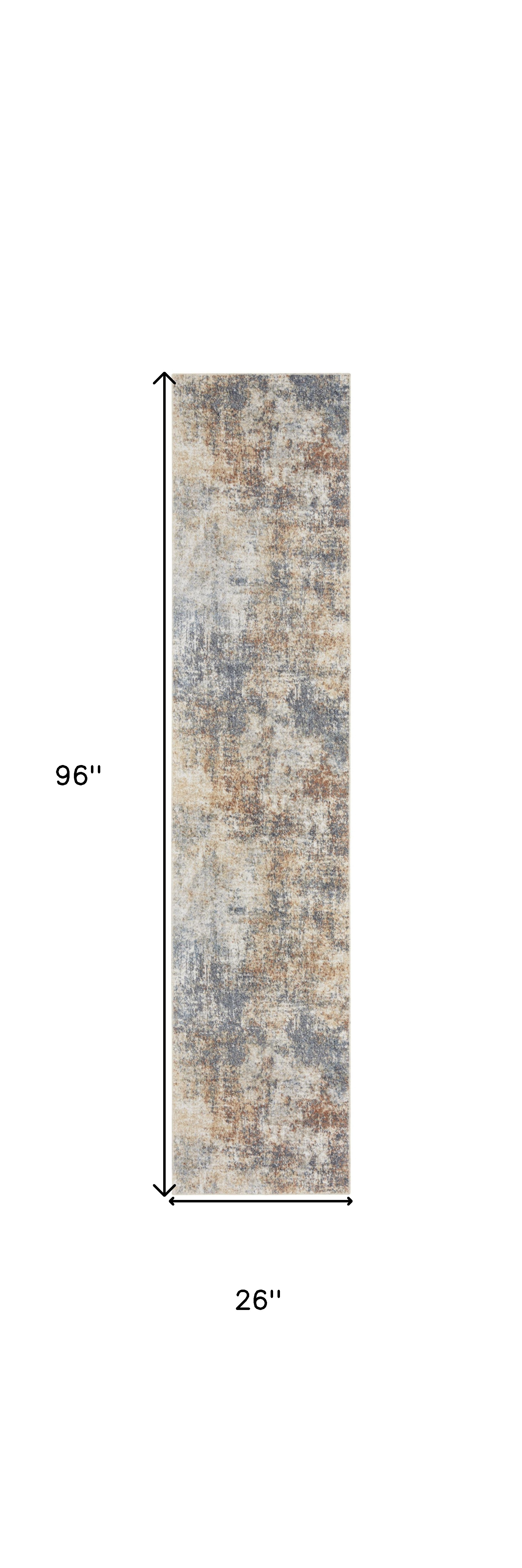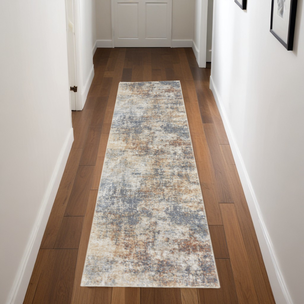 Add some artistry to your room with this 8-foot ivory blue and brown abstract runner rug. Built to last, this rug crafted from polyester fibers is known for its durability and long lasting appeal. Rugs are a great way to showcase your style, hide imperfections, warm your home and reduce noise. This modern style runner makes a great accent for the hallway, in front of cabinets, in the laundry room, or any other space you need a narrow and long rug. 26.00-inch h x 96.00-inch w x 0.25-inch d.