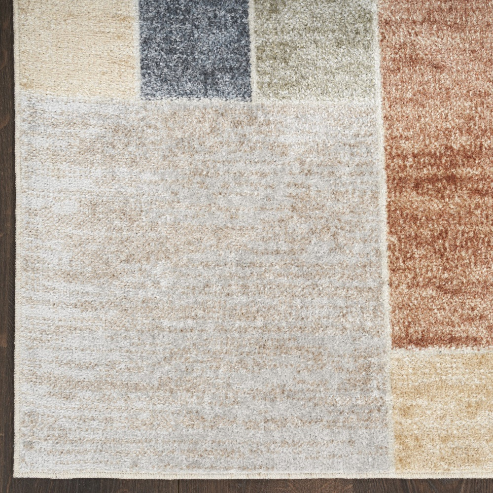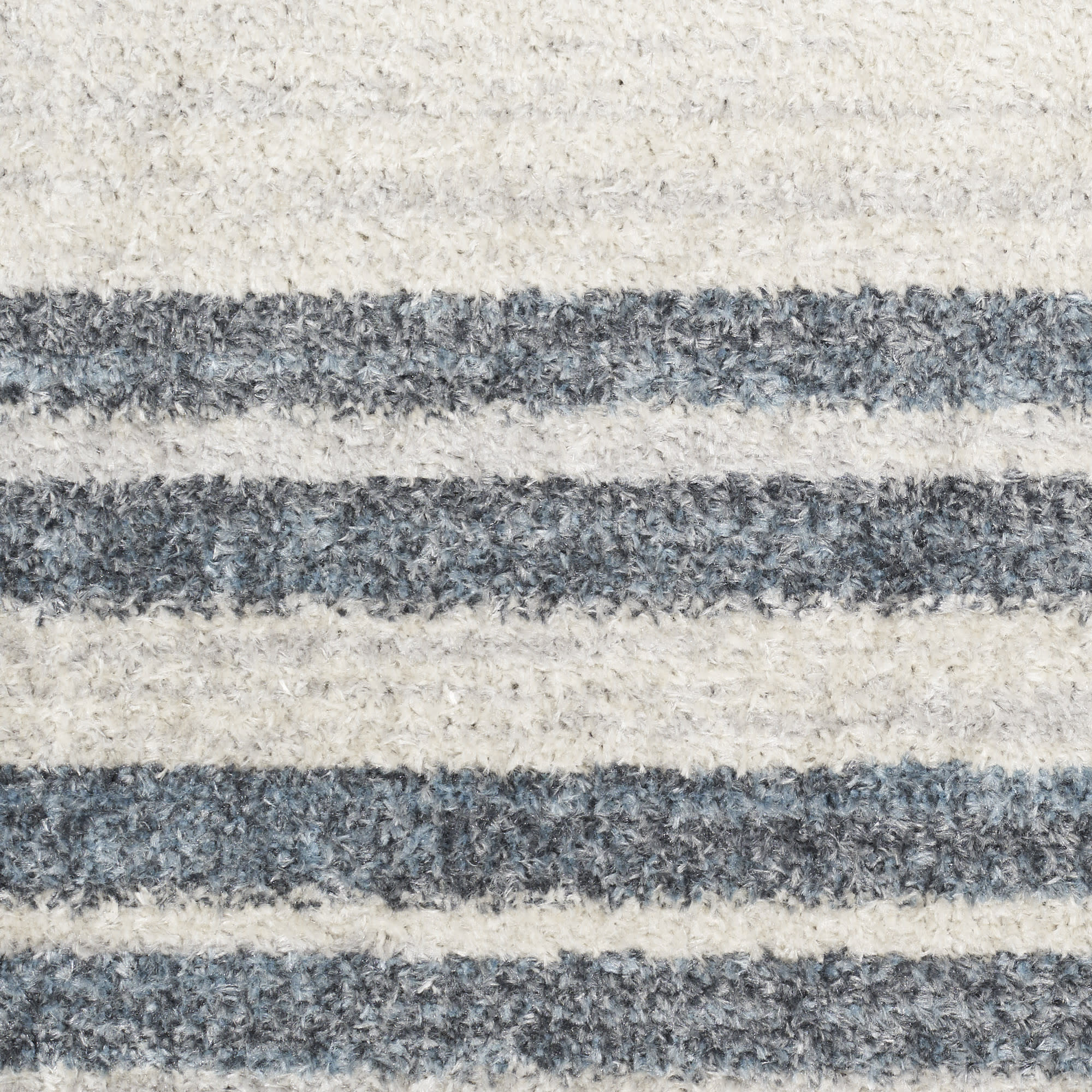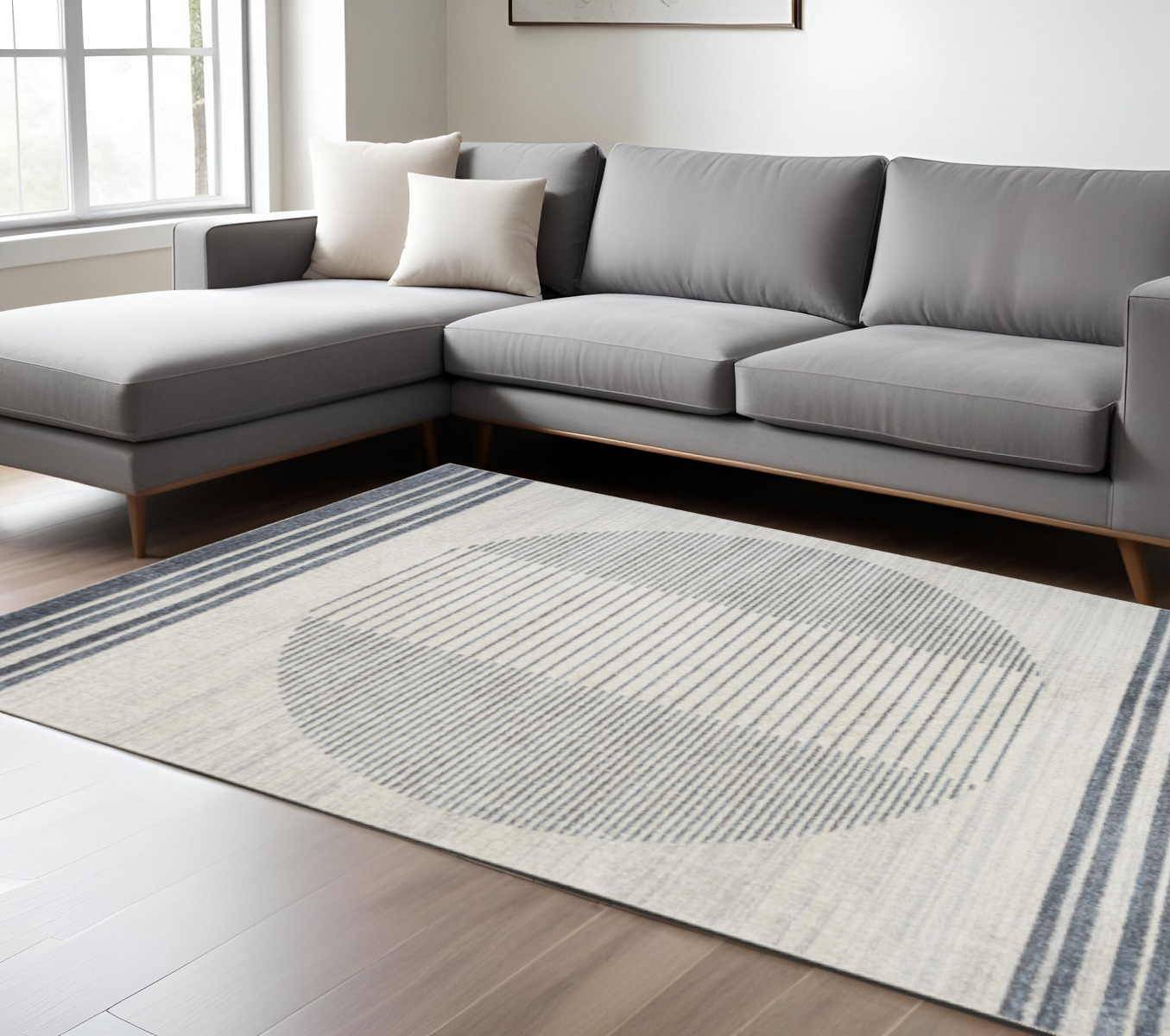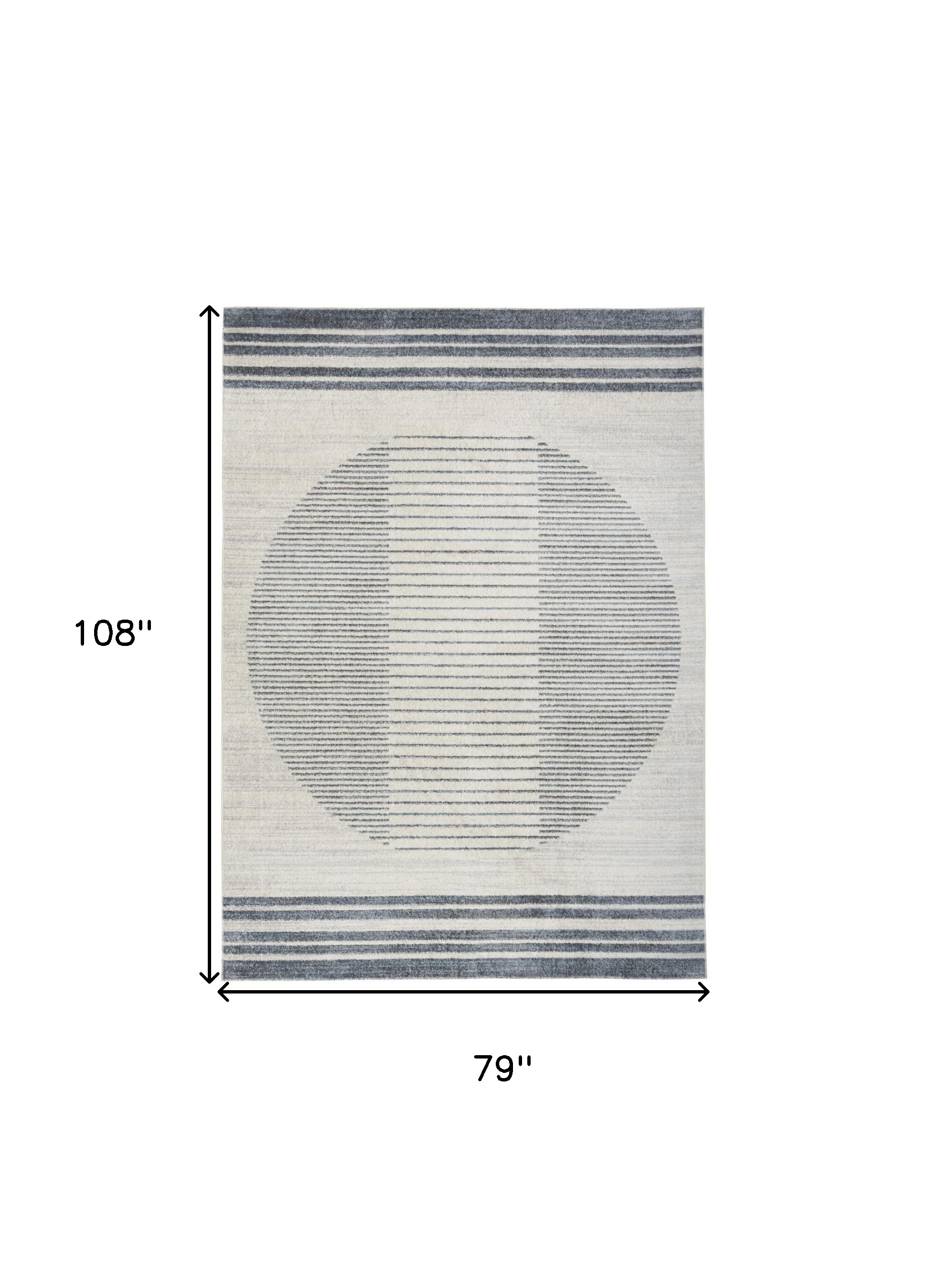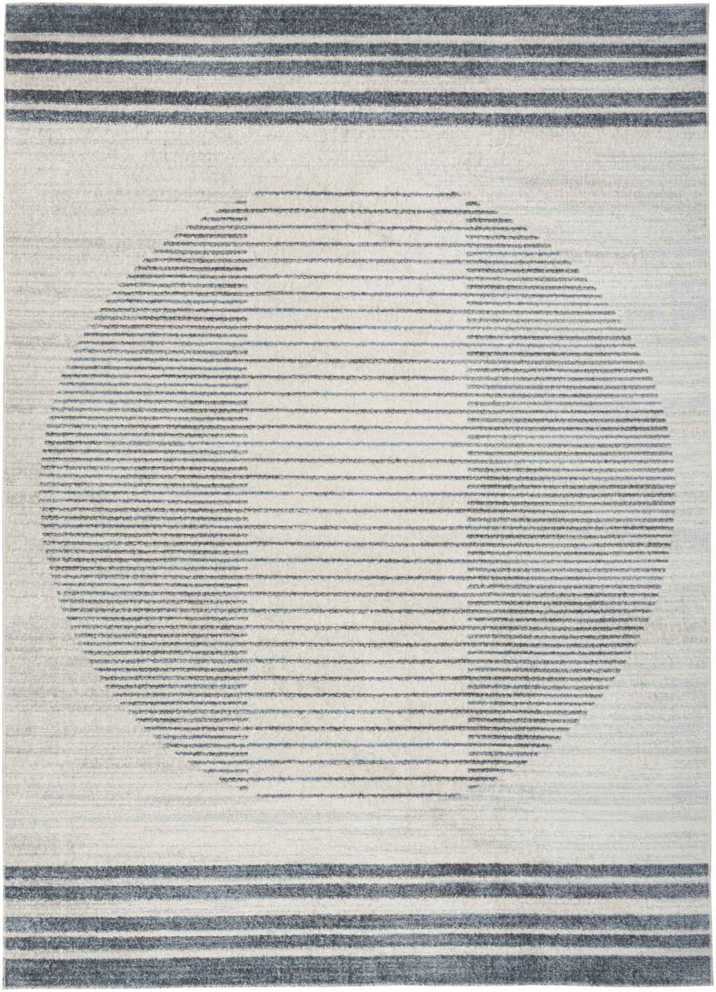 Add some artistry to your room with this 7-foot x 9-foot blue and ivory geometric washable area rug. Built to last, this rug crafted from polyester fibers is known for its durability and long lasting appeal. Rugs are a great way to showcase your style, hide imperfections, warm your home and reduce noise. This larger sized, modern styled rug is ready to create a focal point or statement piece in your room. 79-inch h x 108-inch w x 0.25-inch d.