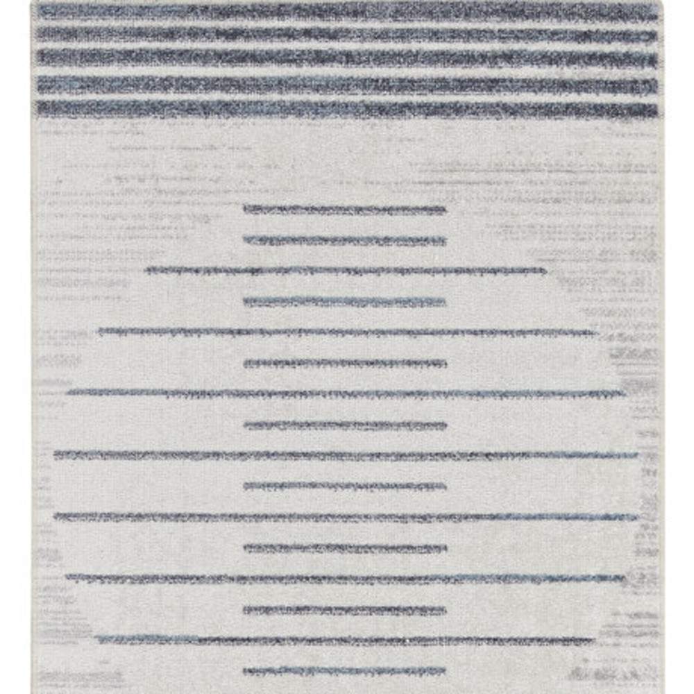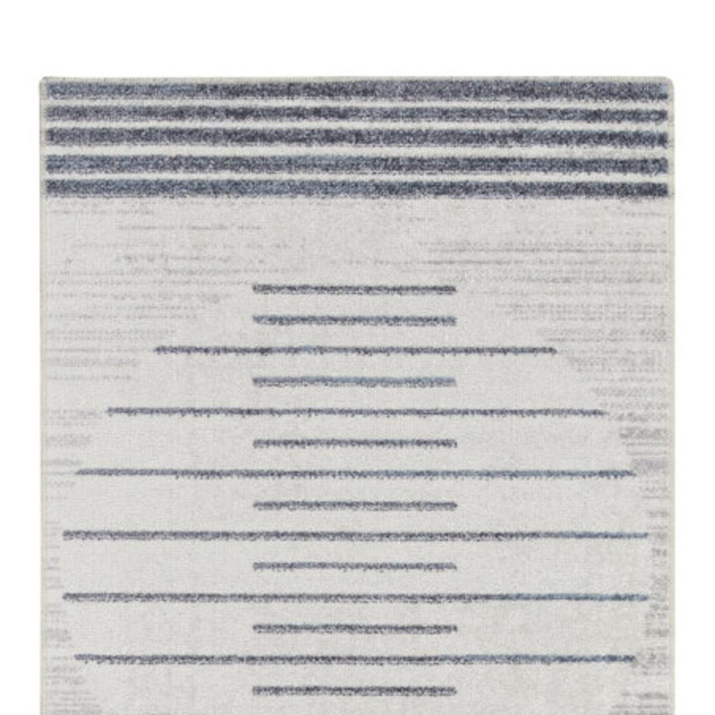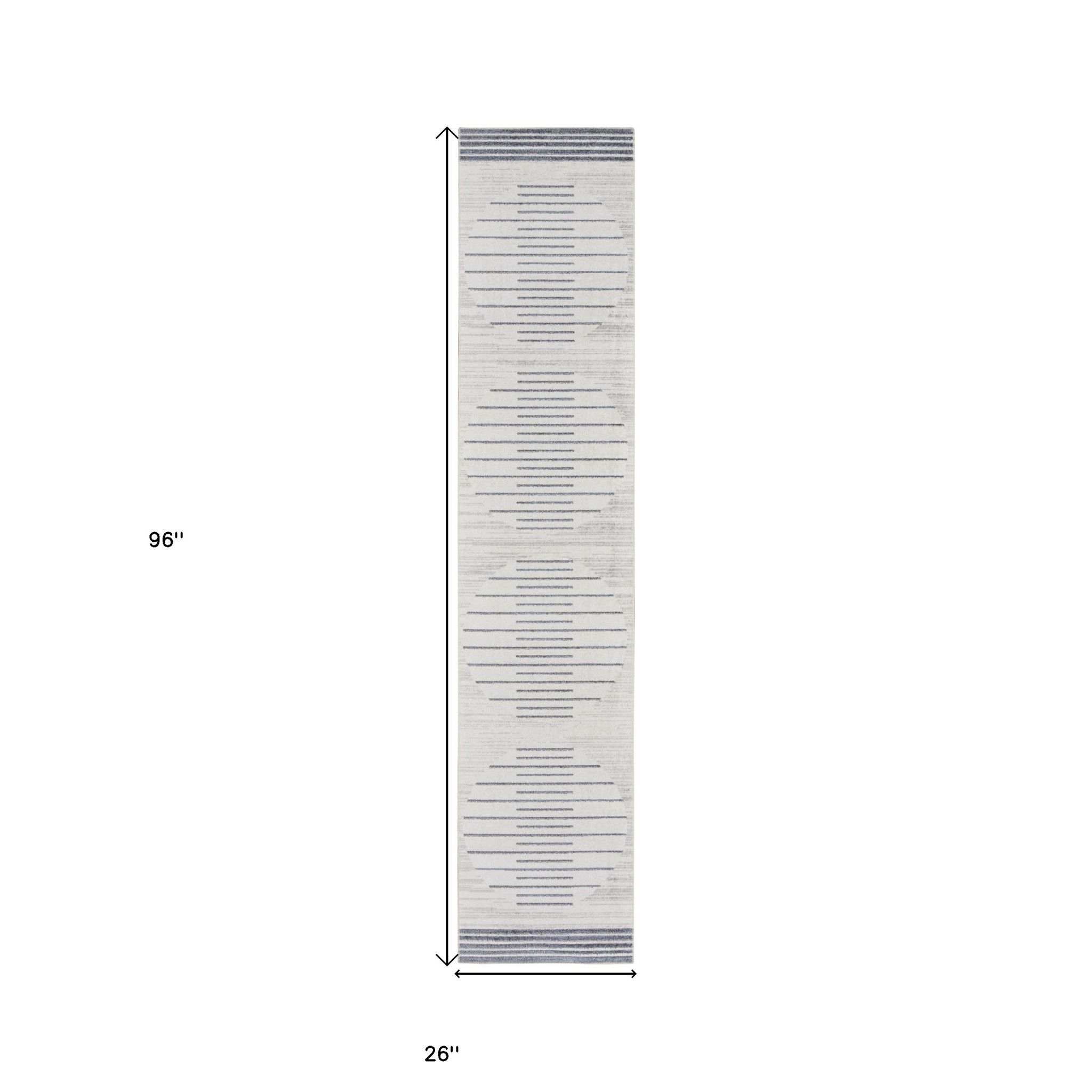 Add great coloration and comfortable texture to your space with this 8-foot blue and ivory geometric washable runner rug. Built to last, this rug crafted from polyester fibers is known for its durability and long lasting appeal. Rugs are a great way to showcase your style, hide imperfections, warm your home and reduce noise. This modern style runner makes a great accent for the hallway, in front of cabinets, in the laundry room, or any other space you need a narrow and long rug. 26.00-inch h x 96.00-inch w x 0.25-inch d.