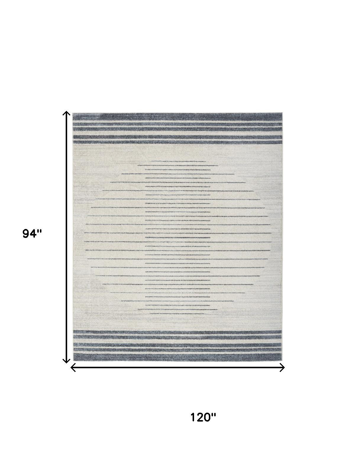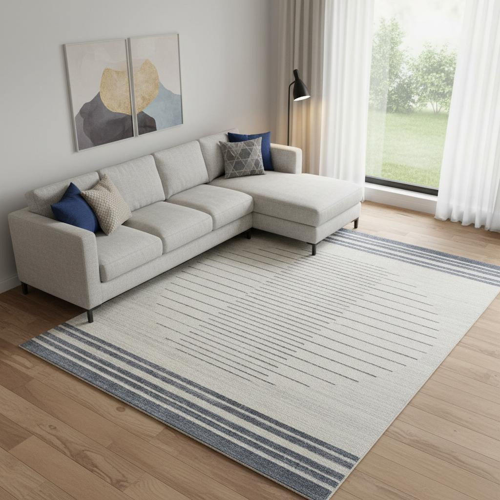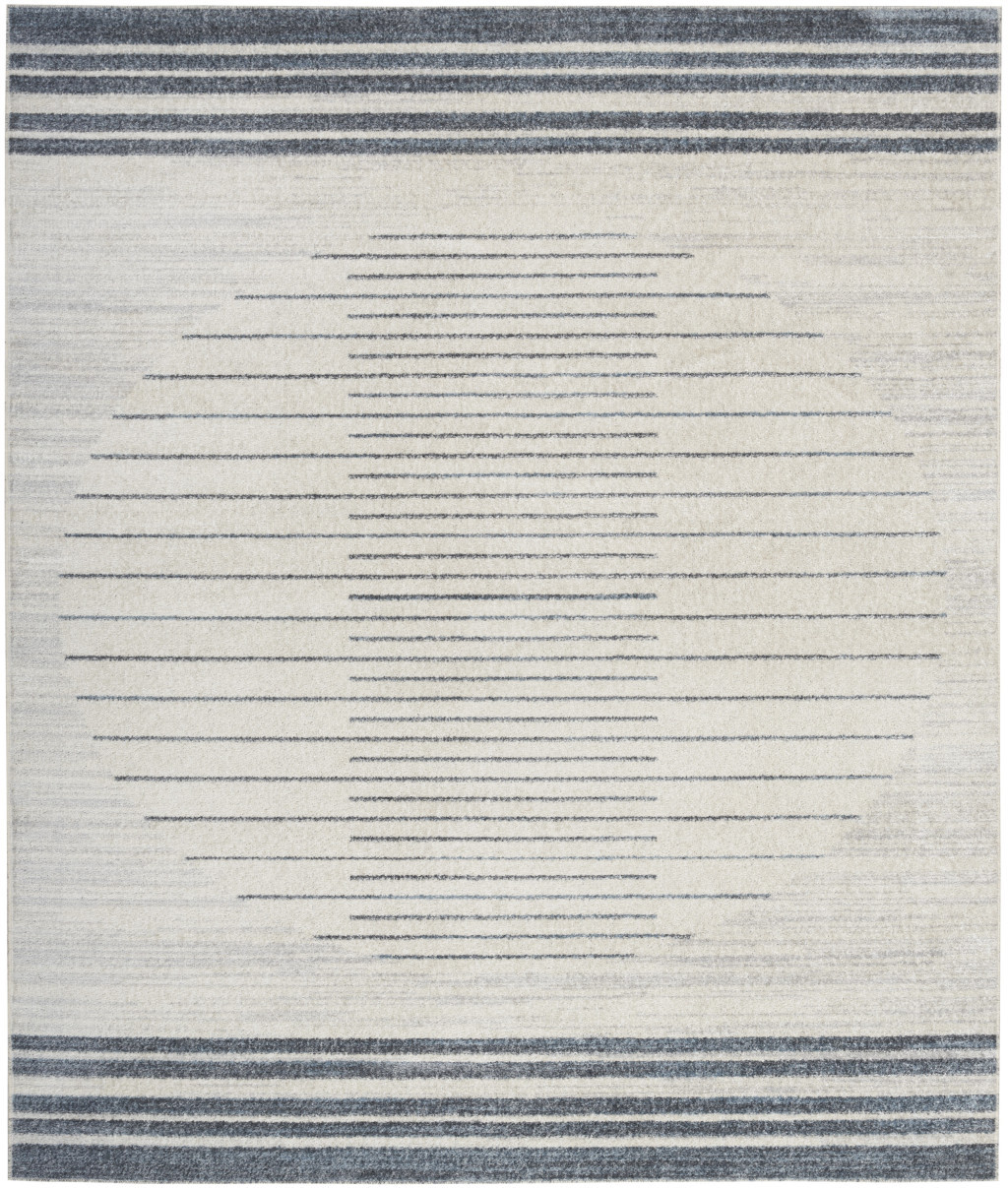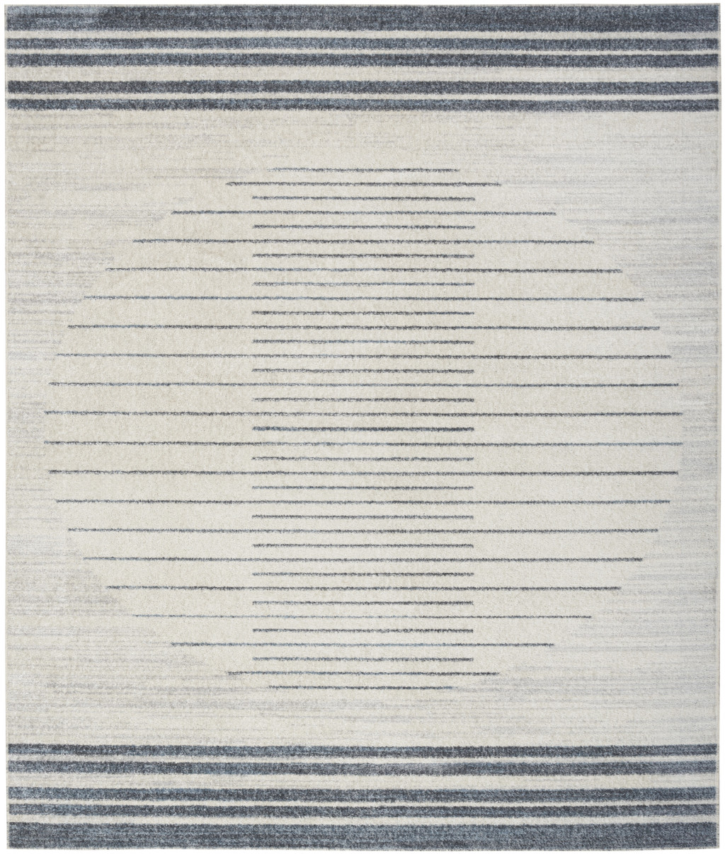 This 8-foot x 10-foot ivory and blue geometric washable area rug, is a great way to add warmth to a room. Ideal for spaces with kids and pets, this rug is stain resistant to help repel dirt and spilled liquids. Built to last, this rug crafted from polyester fibers is known for its durability and long lasting appeal. Rugs are a great way to showcase your style, hide imperfections, warm your home and reduce noise. This larger sized, modern styled rug is ready to create a focal point or statement piece in your room. 94-inch h x 120-inch w x 0.25-inch d.