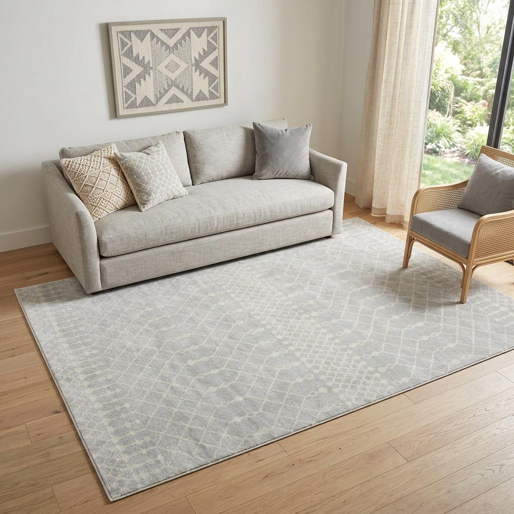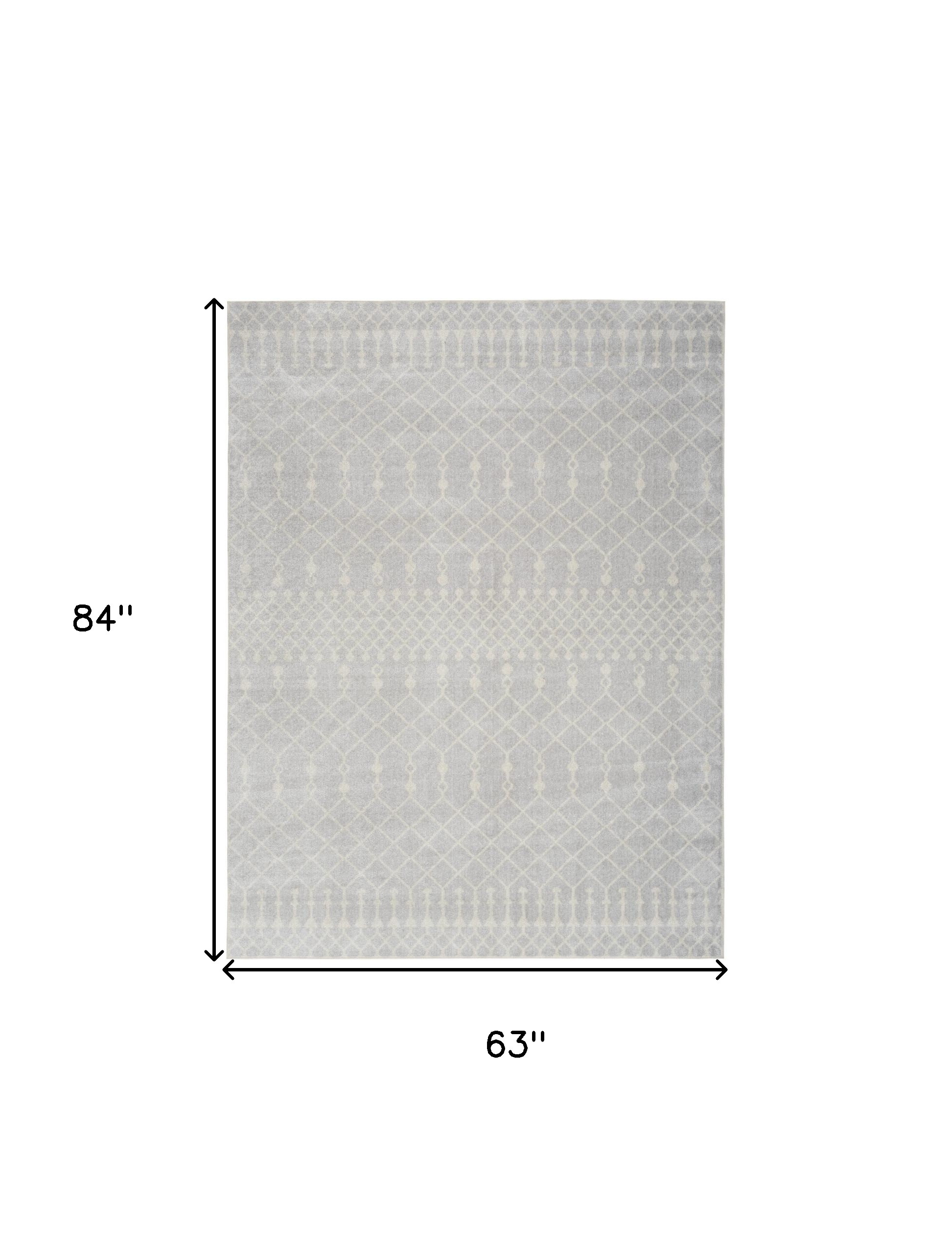 Add some artistry to your room with this 5-foot x 7-foot gray and ivory moroccan power loom washable area rug. This rectangle shaped rug features a moroccan design in gray and ivory to give it visual interest. A classic shape marries with good looking design for your space area rugs help to give warmth and sense of home to your space. 63-inch H x 84-inch W x 0.25-inch D
