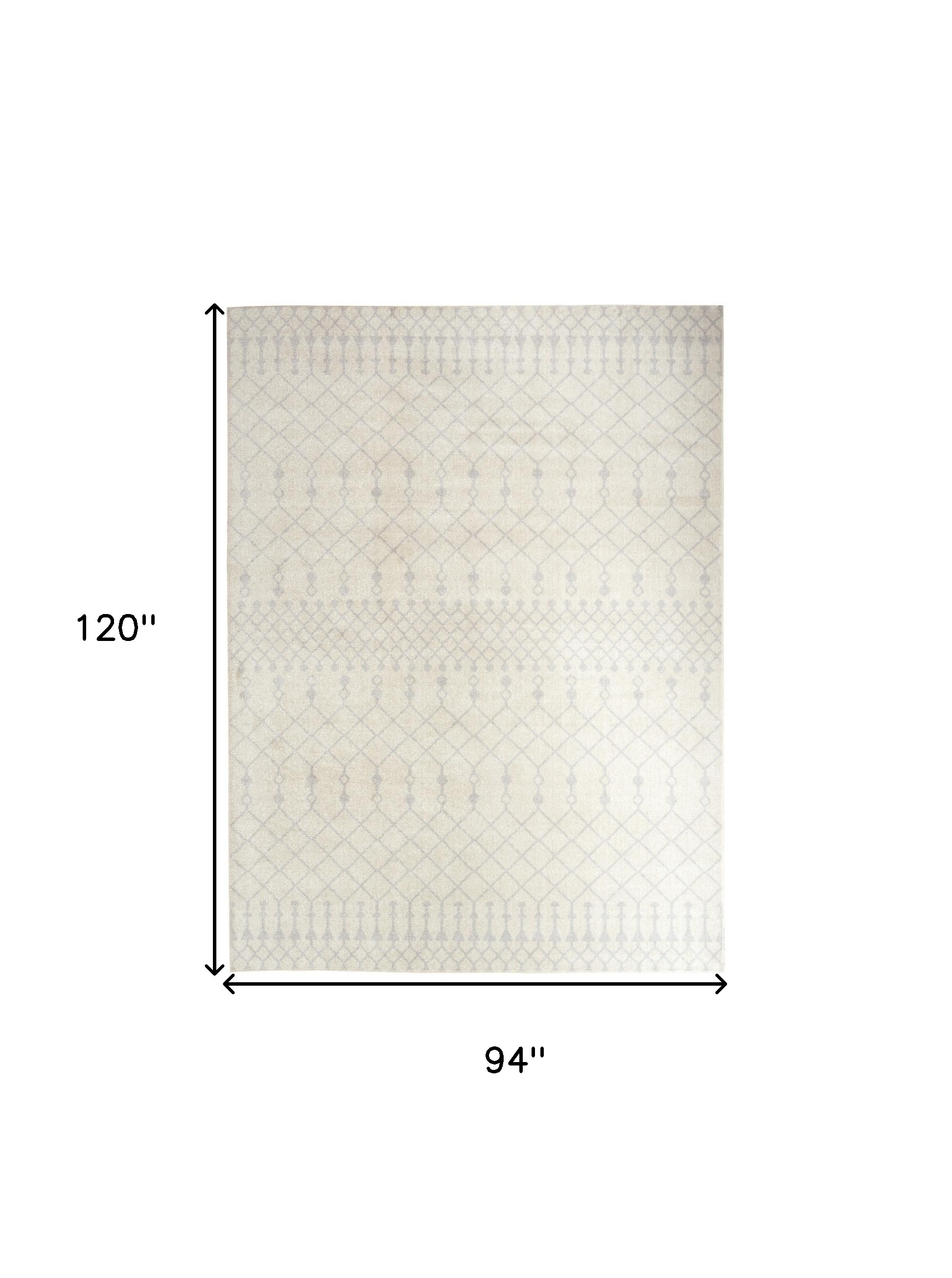 Set an inviting tone in your space with this 8-foot x 10-foot gray and ivory moroccan power loom washable area rug. This rectangle shaped rug features a moroccan design in gray and ivory to give it visual interest. A classic shape marries with good looking design for your space area rugs help to give warmth and sense of home to your space. 94-inch H x 120-inch W x 0.25-inch D
