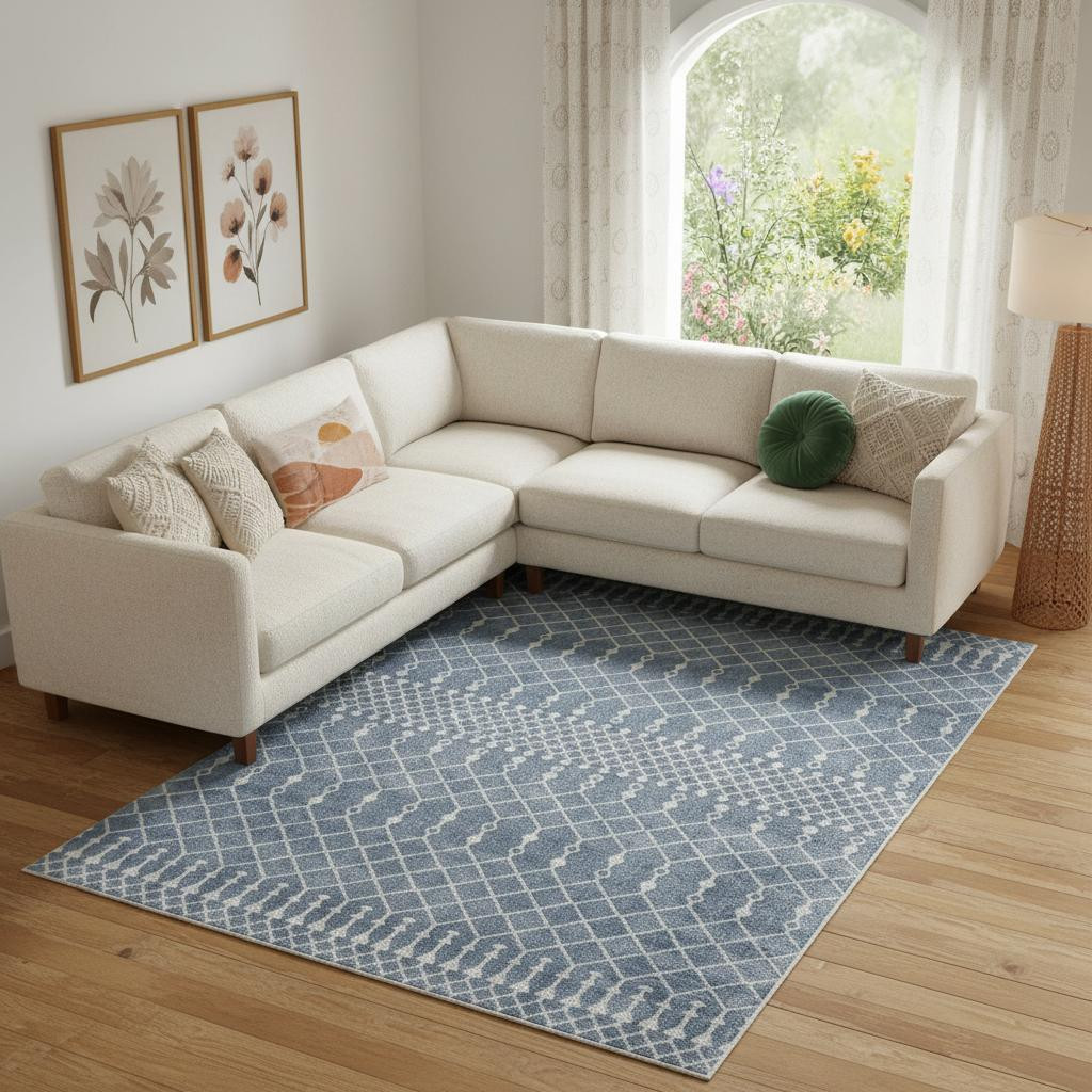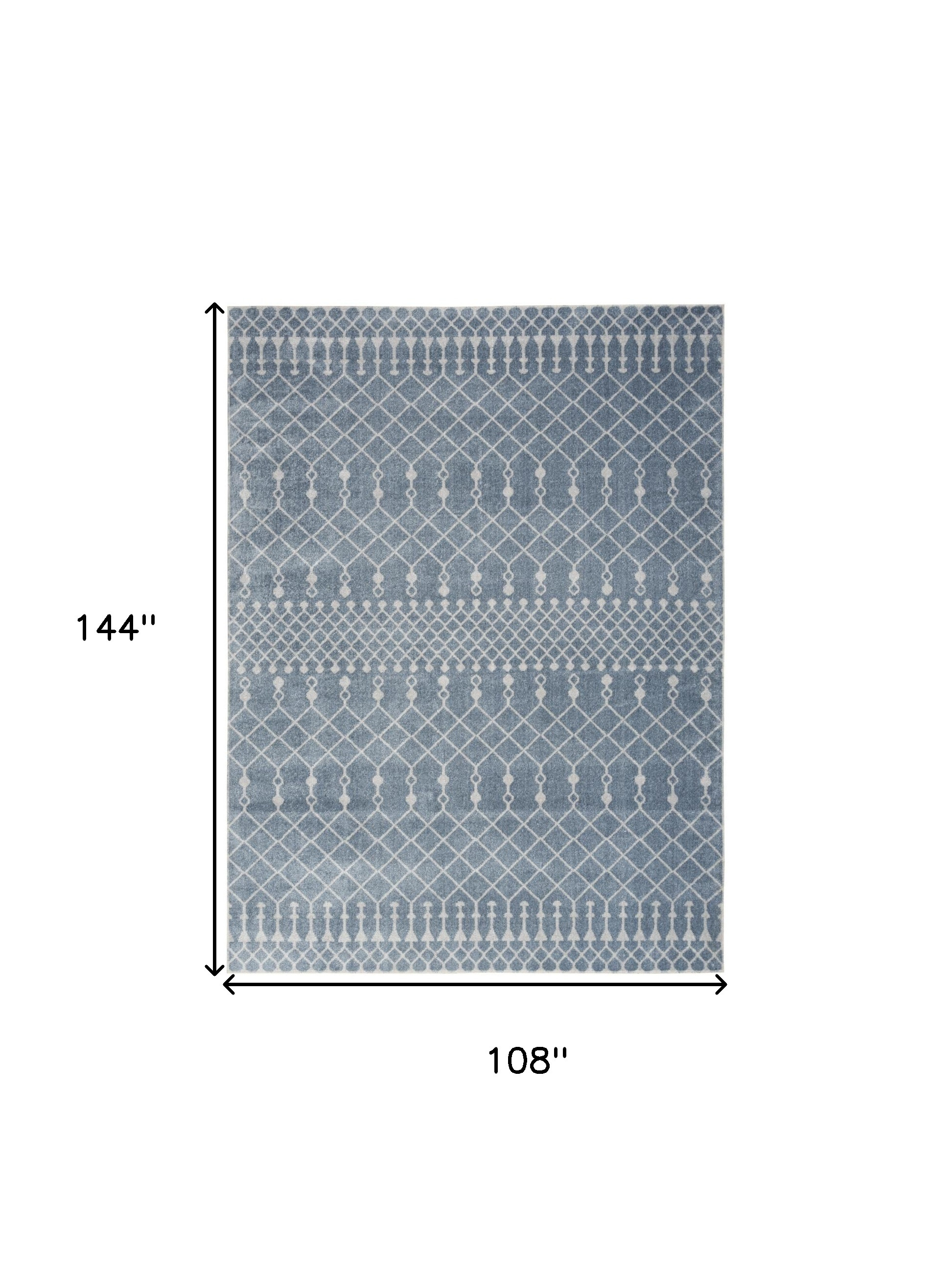 Add great coloration and comfortable texture to your space with this 9-foot x 12-foot blue and ivory moroccan power loom washable area rug. This rectangle shaped rug features a moroccan design in blue and ivory to give it visual interest. A classic shape marries with good looking design for your space place this area rug against a hardwood or tile floor and it will enliven your living space with style and sophistication. 108-inch H x 144-inch W x 0.25-inch D