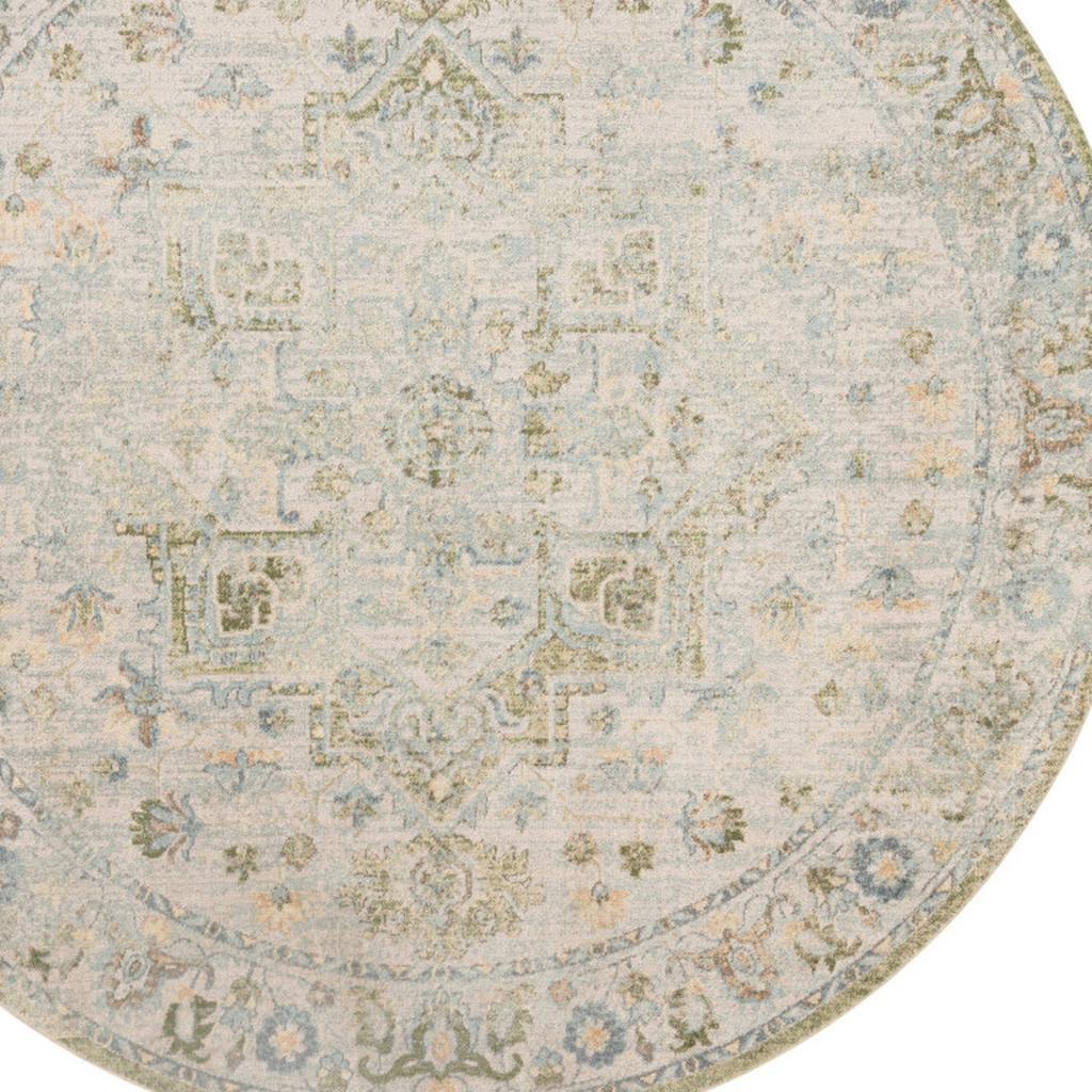 medallion distressed washable round rug, distressed washable round rug, washable round rug, blue floral medallion distressed washable, beige tan blue floral |
