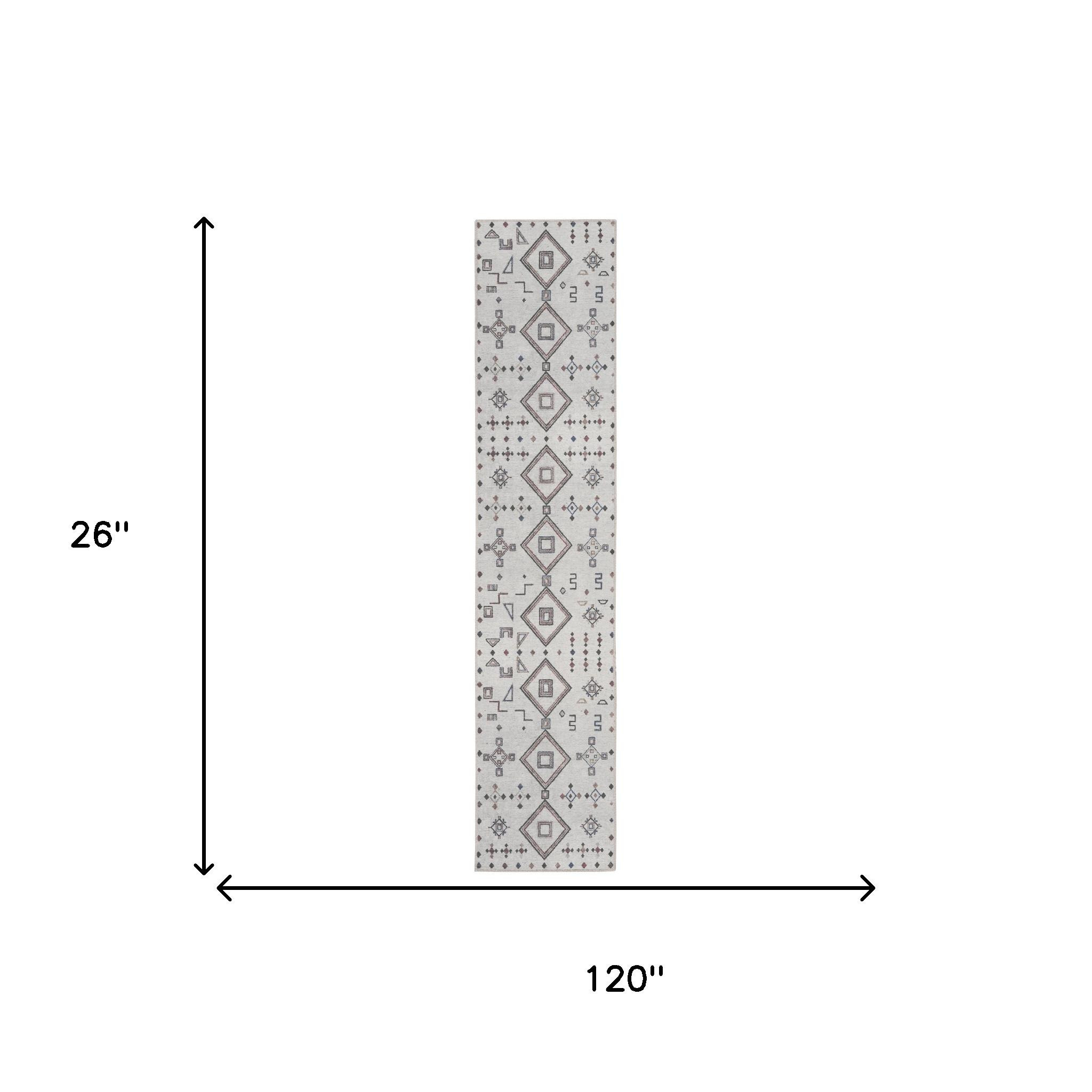 This 10-foot cream geometric distressed washable runner rug, is a great way to add warmth to a room. Rugs are a great way to showcase your style, hide imperfections, warm your home and reduce noise. This rectangular shaped rug features a abstract design that will add a functional and decorative accent to your space. This bohemian style runner makes a great accent for the hallway, in front of cabinets, in the laundry room, or any other space you need a narrow and long rug. 26-inch h x 120-inch w x 0.28-inch d.