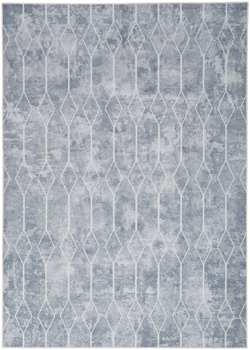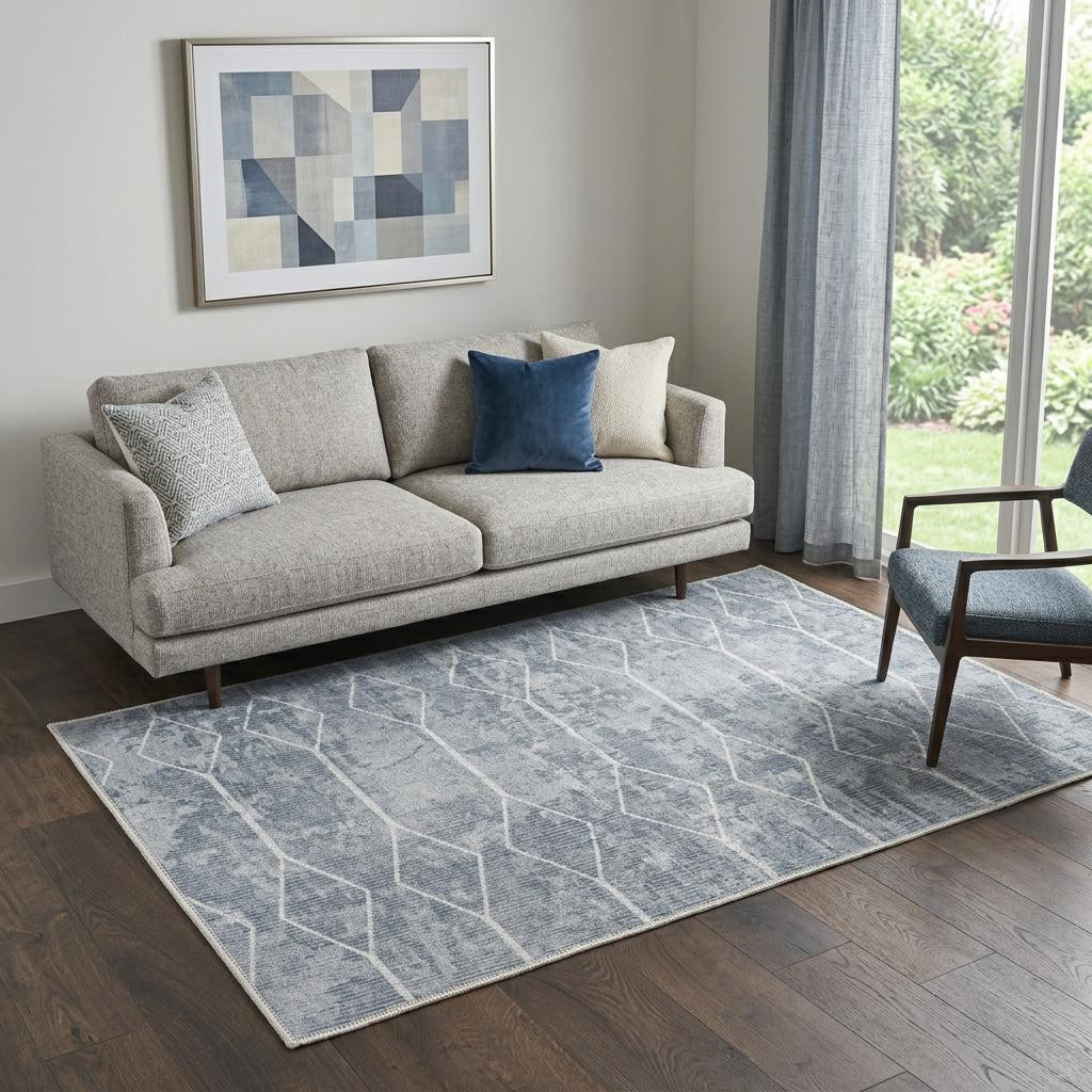 This 5-foot x 7-foot blue and gray geometric power loom washable area rug, is a great way to add warmth to a room. This rectangle shaped rug features a geometric design in blue and gray to give it visual interest. A classic shape marries with good looking design for your space Area Rugs help to give warmth and sense of home to your space. 0.28-inch H x 63.00-inch W x 87.00-inch D