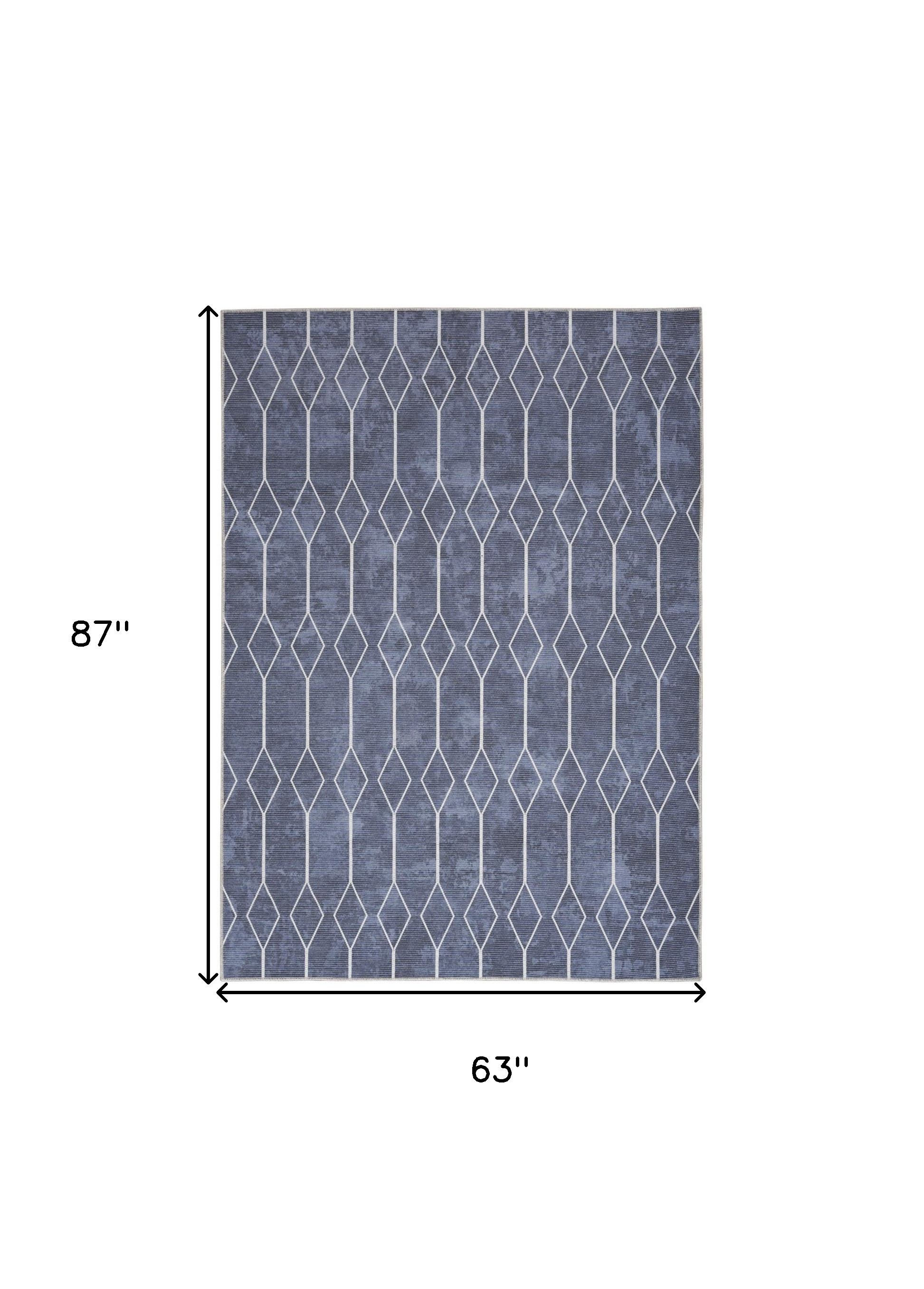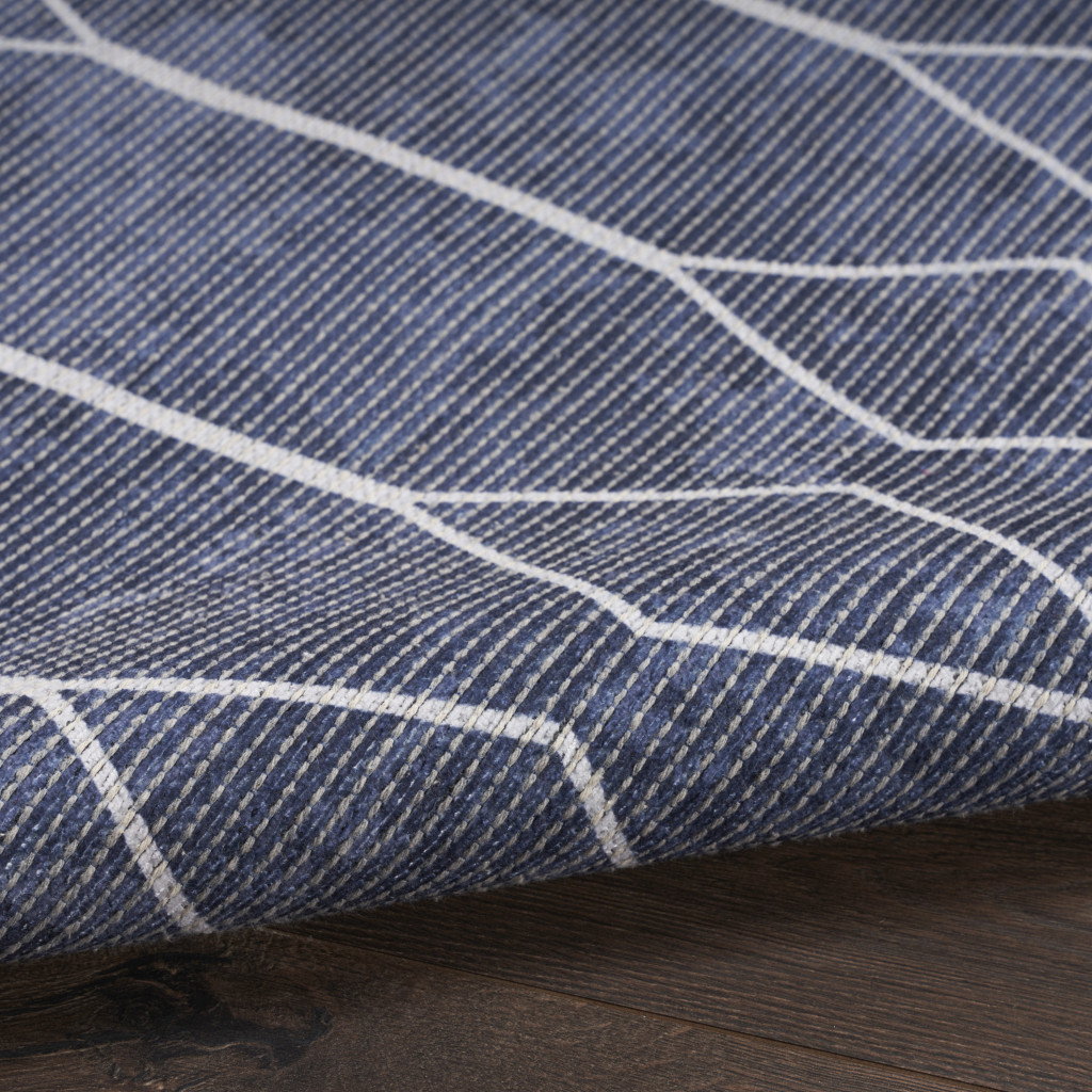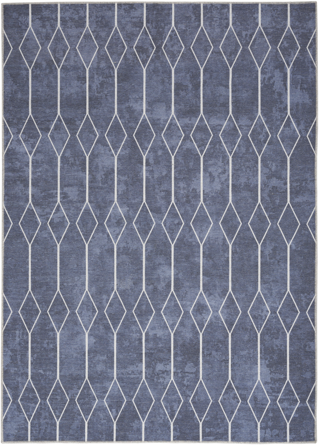 Add some artistry to your room with this 5-foot x 7-foot blue and ivory geometric power loom washable area rug. This rectangle shaped rug features a geometric design in blue and ivory to give it visual interest. A classic shape marries with good looking design for your space Place this area rug against a hardwood or tile floor and it will enliven your living space with style and sophistication. 0.28-inch H x 63.00-inch W x 87.00-inch D