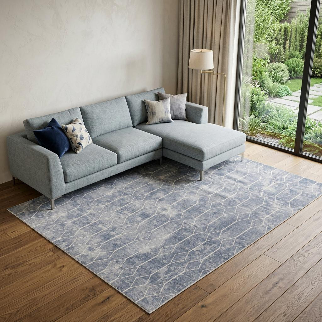 Set an inviting tone in your space with this 9-foot x 12-foot blue and beige geometric power loom washable area rug. This rectangle shaped rug features a geometric design in blue and beige to give it visual interest. A classic shape marries with good looking design for your space Area Rugs help to give warmth and sense of home to your space. 0.28-inch H x 110.00-inch W x 144.00-inch D