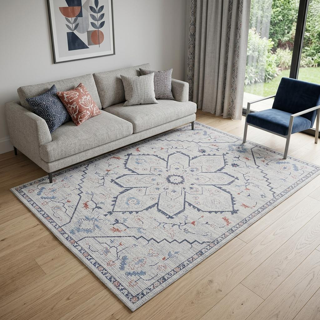 loom washable area rug, power loom washable area rug, washable area rug, oriental power loom washable area, ivory blue oriental power loom |