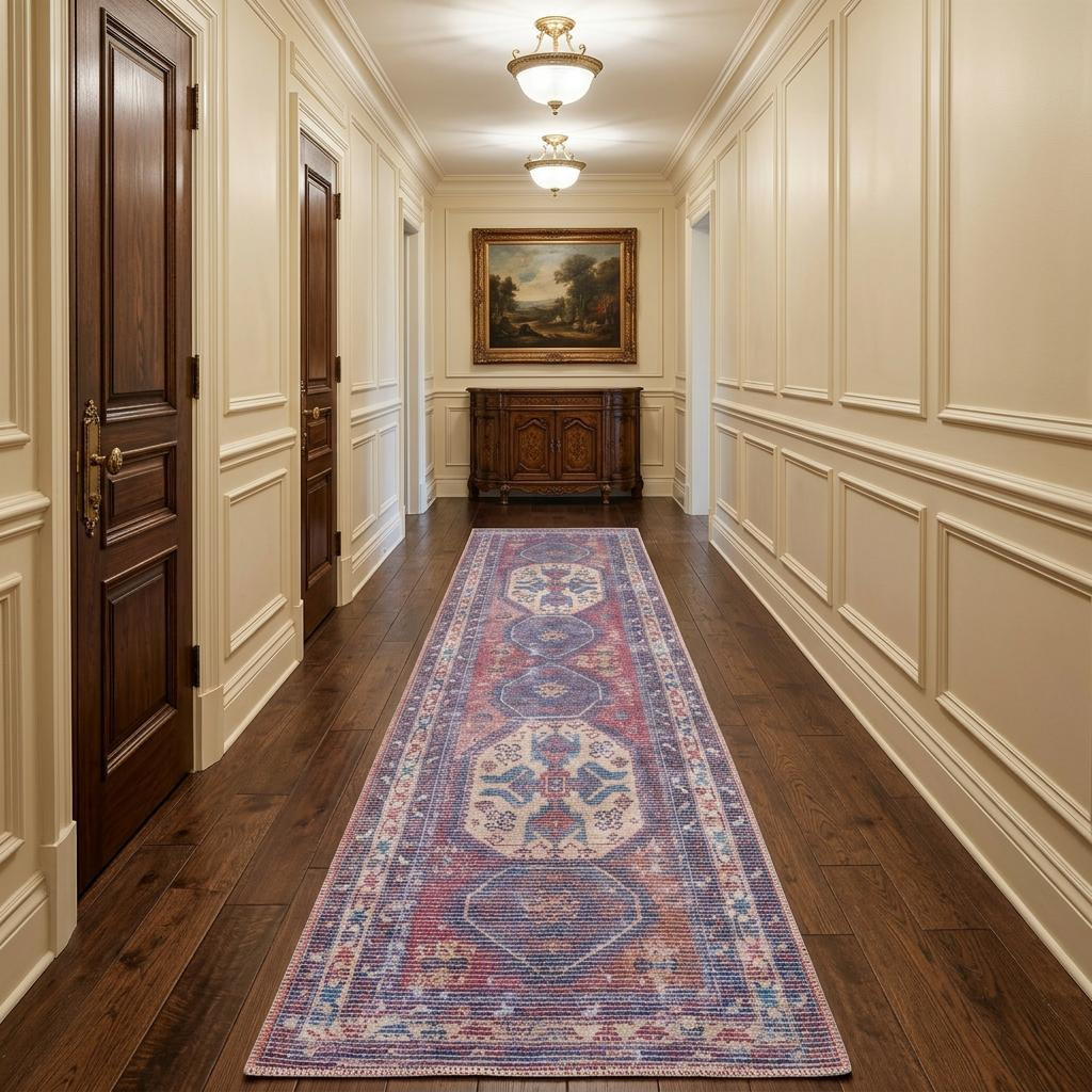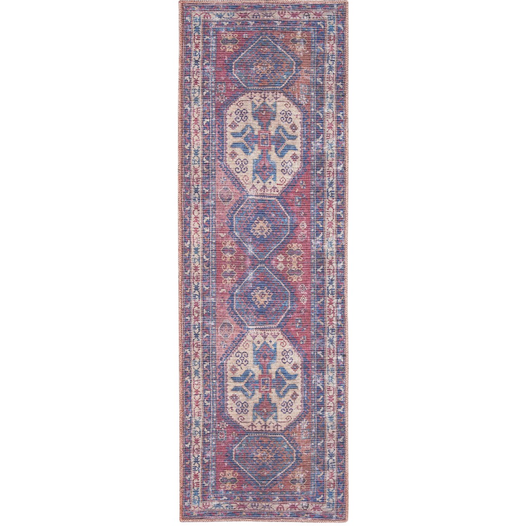 Add great coloration and comfortable texture to your space with this 10-foot blue and red floral power loom distressed washable runner rug. This runner shaped rug features a floral design in blue and red to give it visual interest. A classic shape marries with good looking design for your space Place this area rug against a hardwood or tile floor and it will enliven your living space with style and sophistication. 0.28-inch H x 26.00-inch W x 120.00-inch D